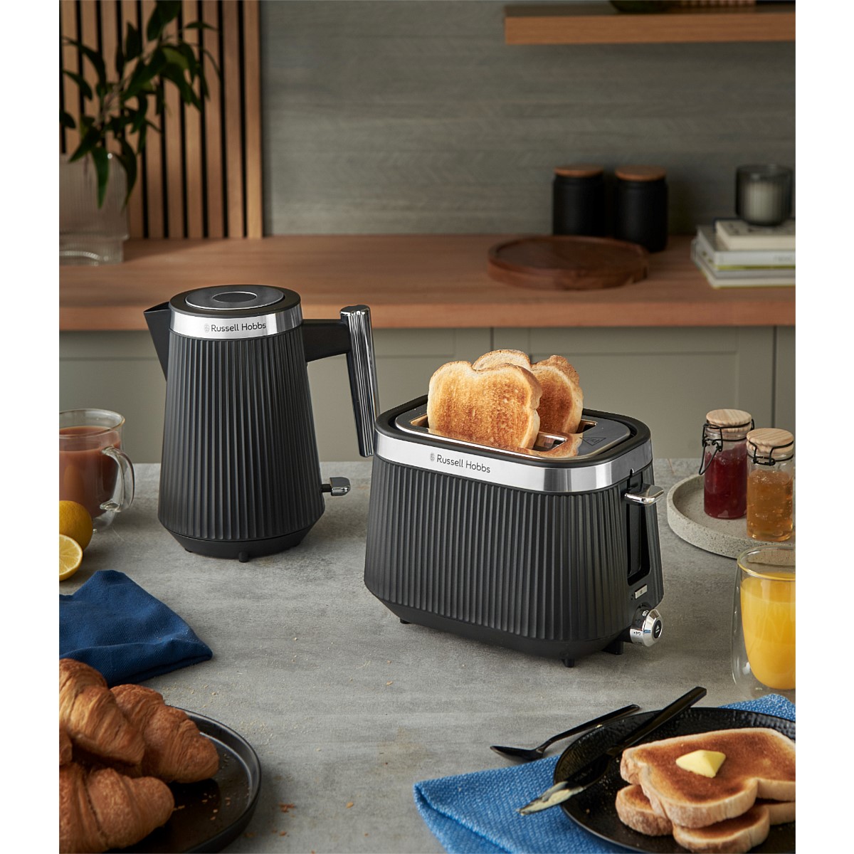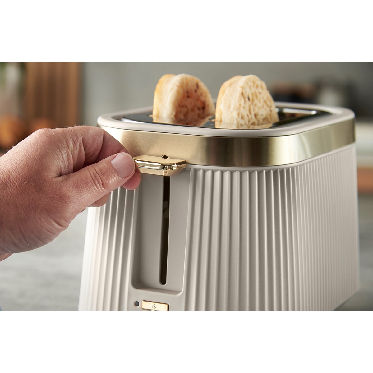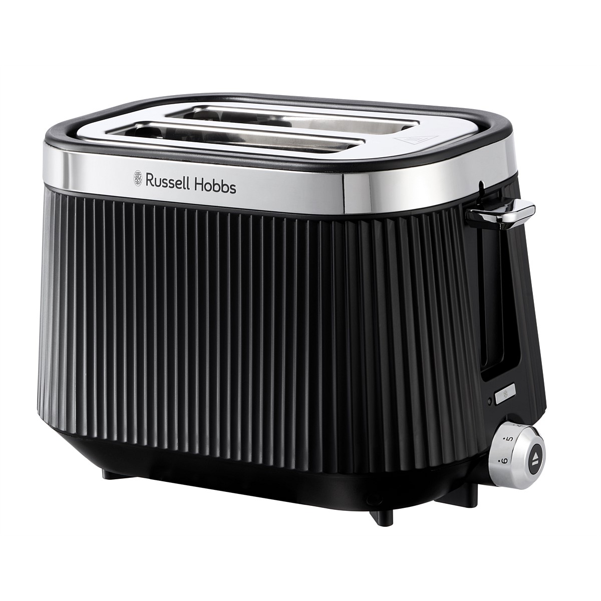 An elegant matte black fluted exterior sits in contrast to the brushed stainless-steel trim making the Russell Hobbs Brontë 2 Slice Toaster a stylish addition to your kitchen worktop. Check to see if your slice is just how you like it without stopping the cycle with the Lift and Look feature. And the high lift lever lets you retrieve smaller snacks like bagels without risking your fingers in the heat. Whether you forgot to get your bread out of the freezer, or you’ve let your bagel go cold, there’s a setting to help you toast the perfect breakfast with the frozen, reheat and cancel functions. The indicator light shines until your perfect slice pops or you can heat up a fresh pastry on the bun warmer for a little extra indulgence.