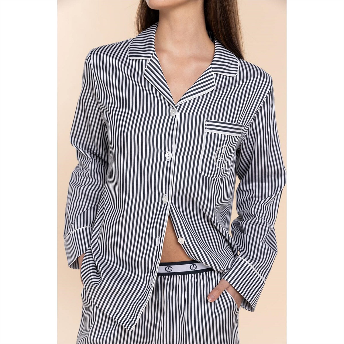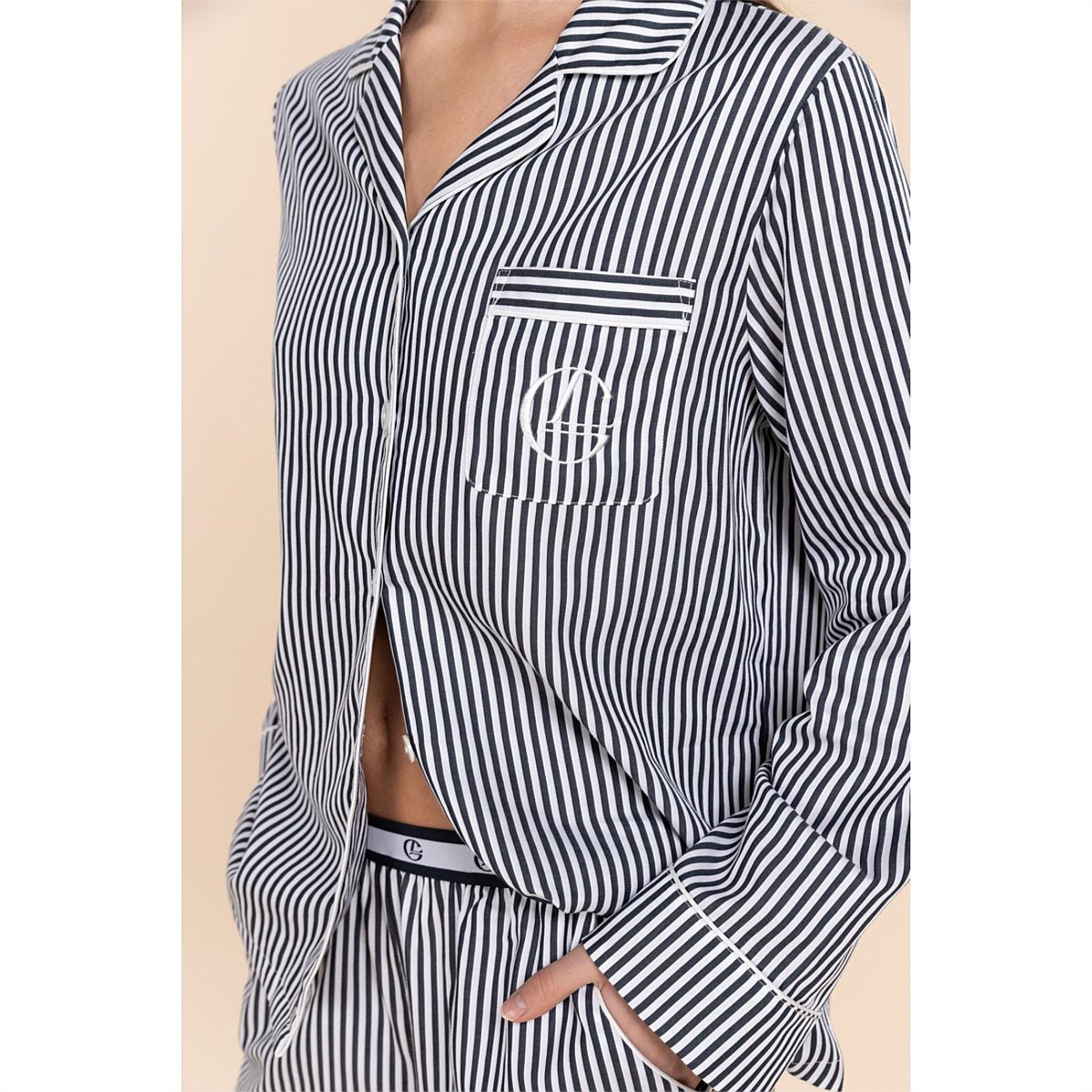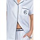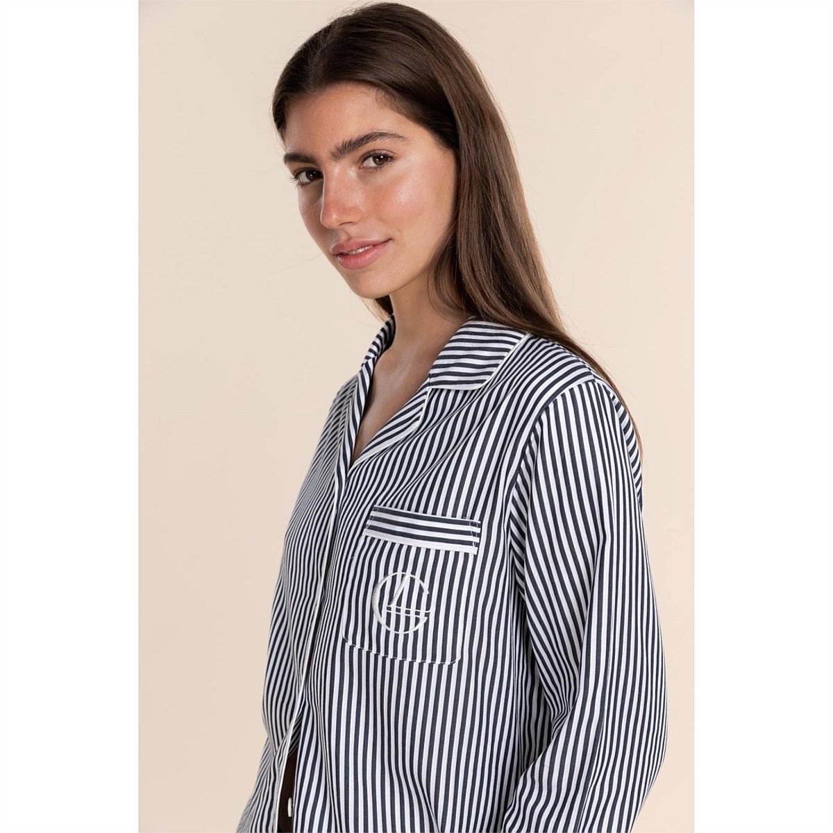 Style Top: Button-through shirt, shell buttons, embroidered pocket, classic pyjama front