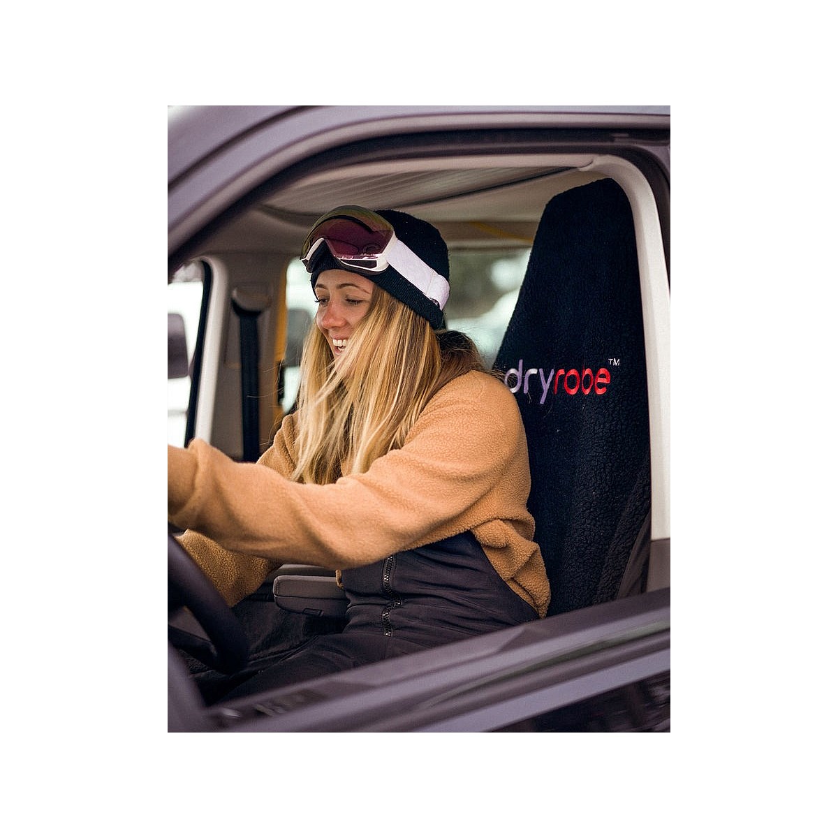 The super tough, ultra-warm, water-repellent Dryrobe® Car Seat Cover combines elasticated adjustable straps with hook and loop fastenings, offering a universal fit for most car and van front seats.