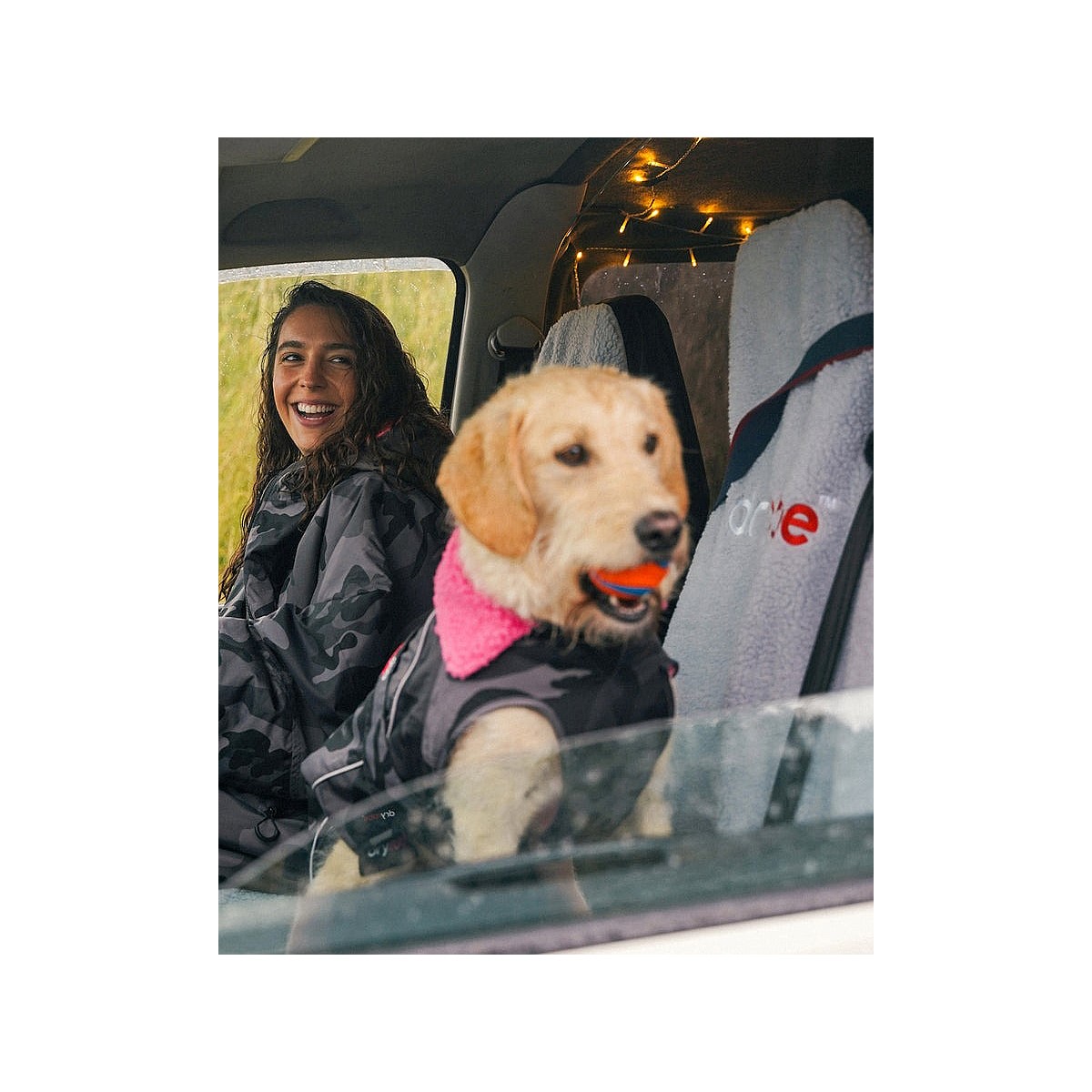 The super tough, ultra-warm, water-repellent Dryrobe® Car Seat Cover combines elasticated adjustable straps with hook and loop fastenings, offering a universal fit for most car and van front seats.