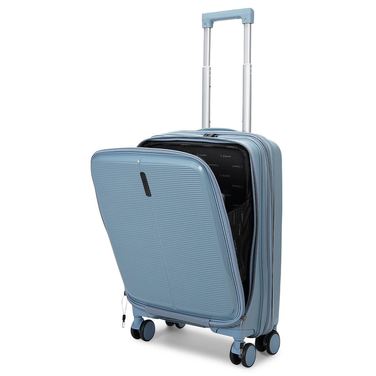 - Lockable front open zippers - loops hook into the main compartment zippers (carry-on only)