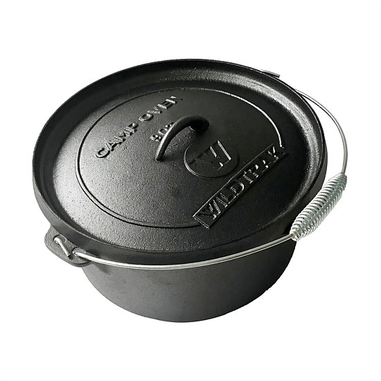 Pre seasoned and heavy duty, our 8.5L cast iron camp oven is a great way to cook around the campsite, from bread to soups, roasts to cakes.