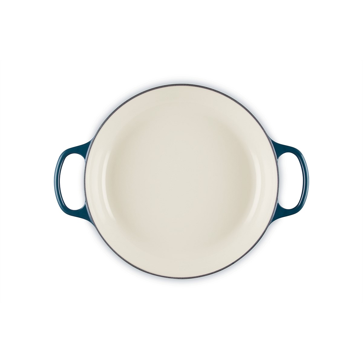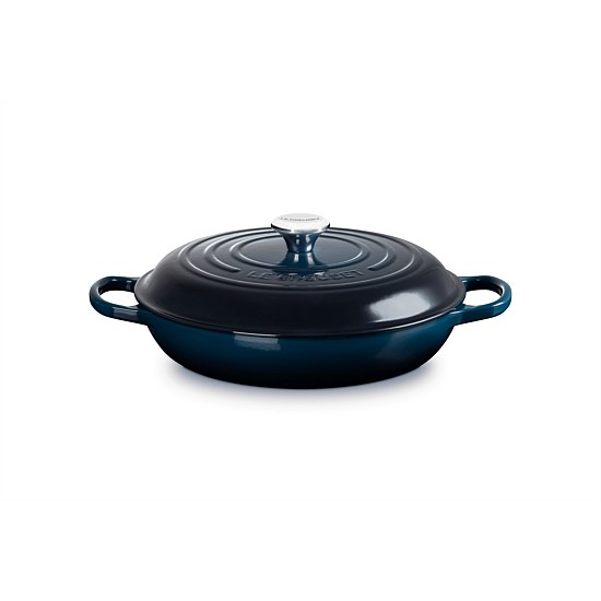 Crafted at our original French foundry, our cast iron pieces are the stuff of culinary legend. This shallow casserole is no exception. The large flat shape and shallow sides make it perfect for browning meat and vegetables, simmering casseroles, stir frying and baking. It enhances caramelisation, for moreish mouthfuls.