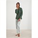 100% Cotton Sateen full-length pants with 95% Cotton/ 5% Elastane top. Fashion green fine floral print. Long sleeve fashion green stretch knit top, pants with elasticated waistband and drawstring.