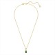 This shimmering pendant from the Stilla family is small yet powerfully beautiful. Like a droplet of light, the pendant features a pear-cut green centrestone in a gold-tone plated surround enhanced with square clear crystals around the edges and the bail. Beautifully attached to a gold-tone plated chain with a round stone detail at the end and a 5cm elongation, this is a piece you can wear every day, making it a signature part of your style.
