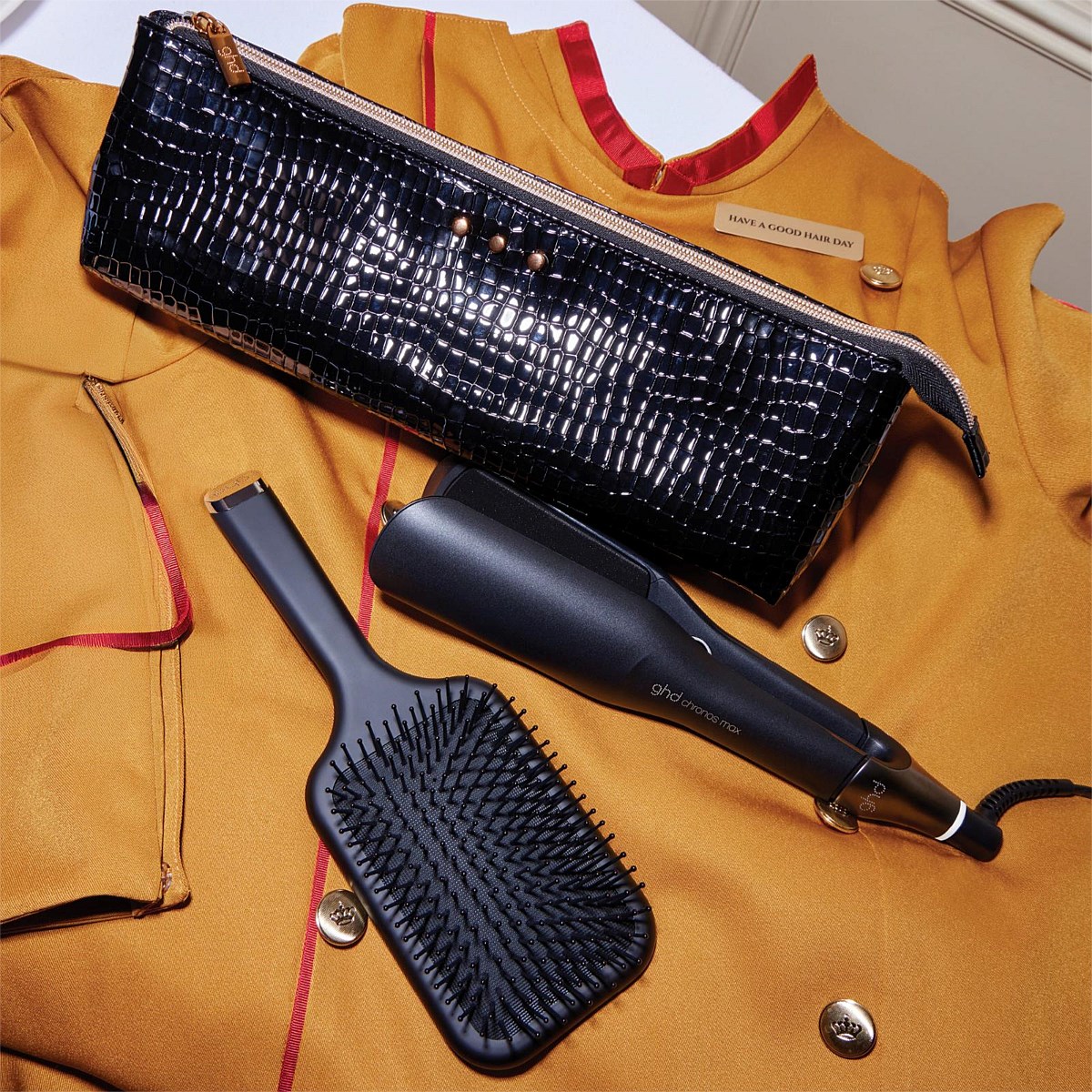 Complete your look with the ghd Comb Out Detangling Comb — the perfect wide-toothed tool for detangling, dressing out waves or distributing product evenly through hair. The set also includes a heat-resistant styling glove7 and a sleek heat-resistant bag for stylish storage, wherever your hair takes you.¹