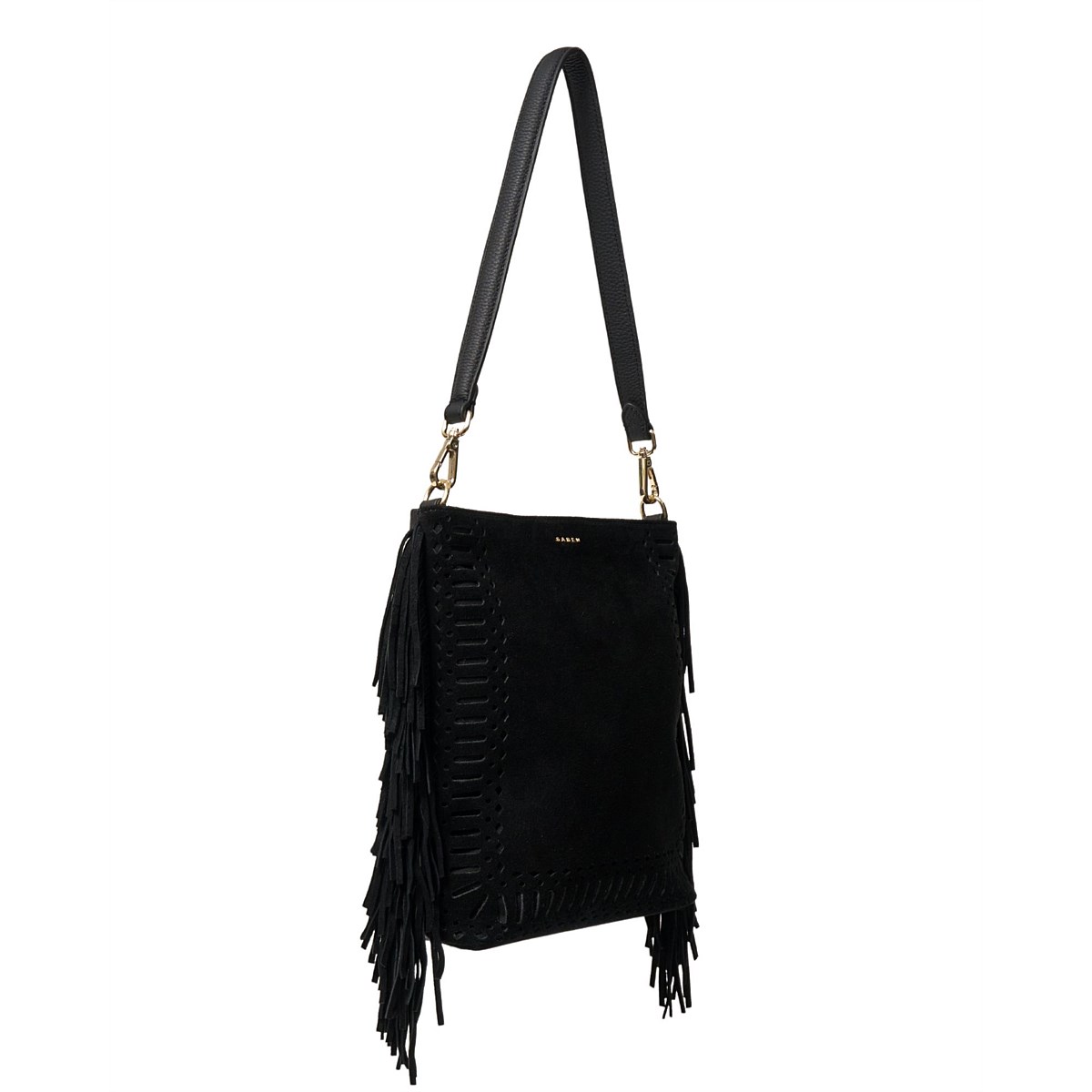 Claudette is your next bag on high rotation. Carefully hand-crafted in suede for front panel and lychee leather on the back her beautiful details make for the perfect addition to any outfit. A practical bucket style worn on the shoulder, the perfect companion from day to night. Fringe tassel detail gives the bagan added dimension of movement.