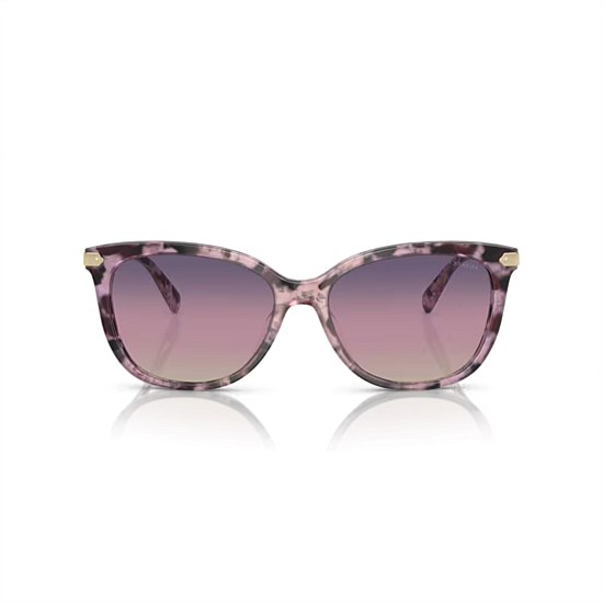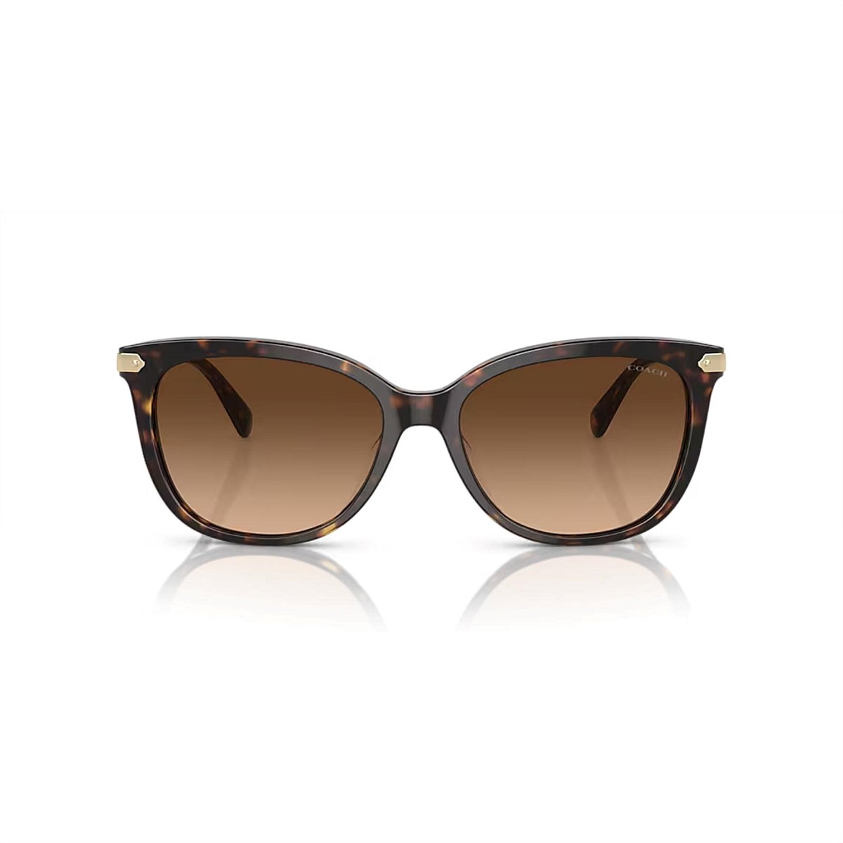Colorful tortoise acetates meet the rich plating of hangtag-inspired hardware. Fashionable tortoise nuances combine with delicate gradient lenses in this feminine cat eye.