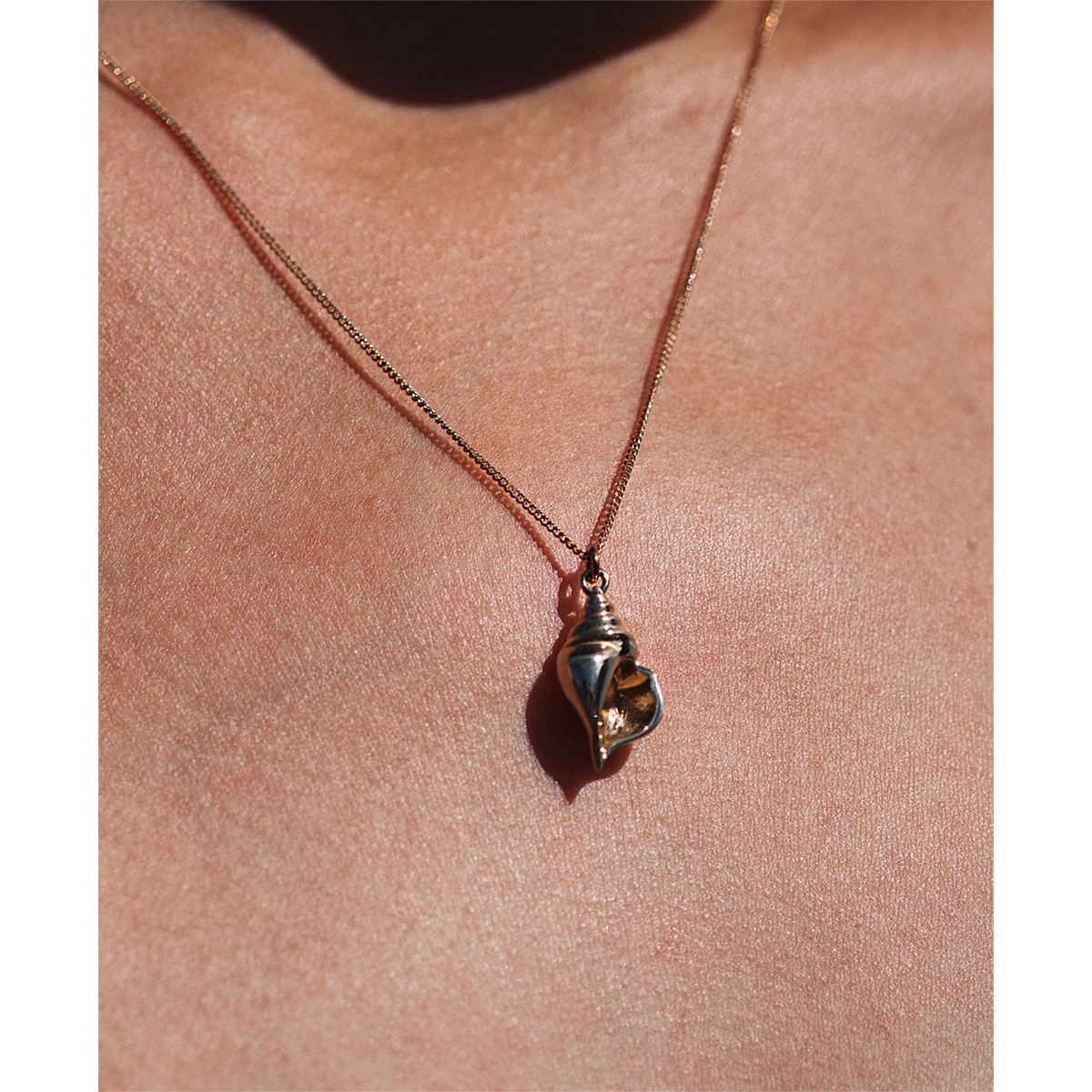 A small and intricately-sculpted conch charm, suspended from the most delicate of chains.