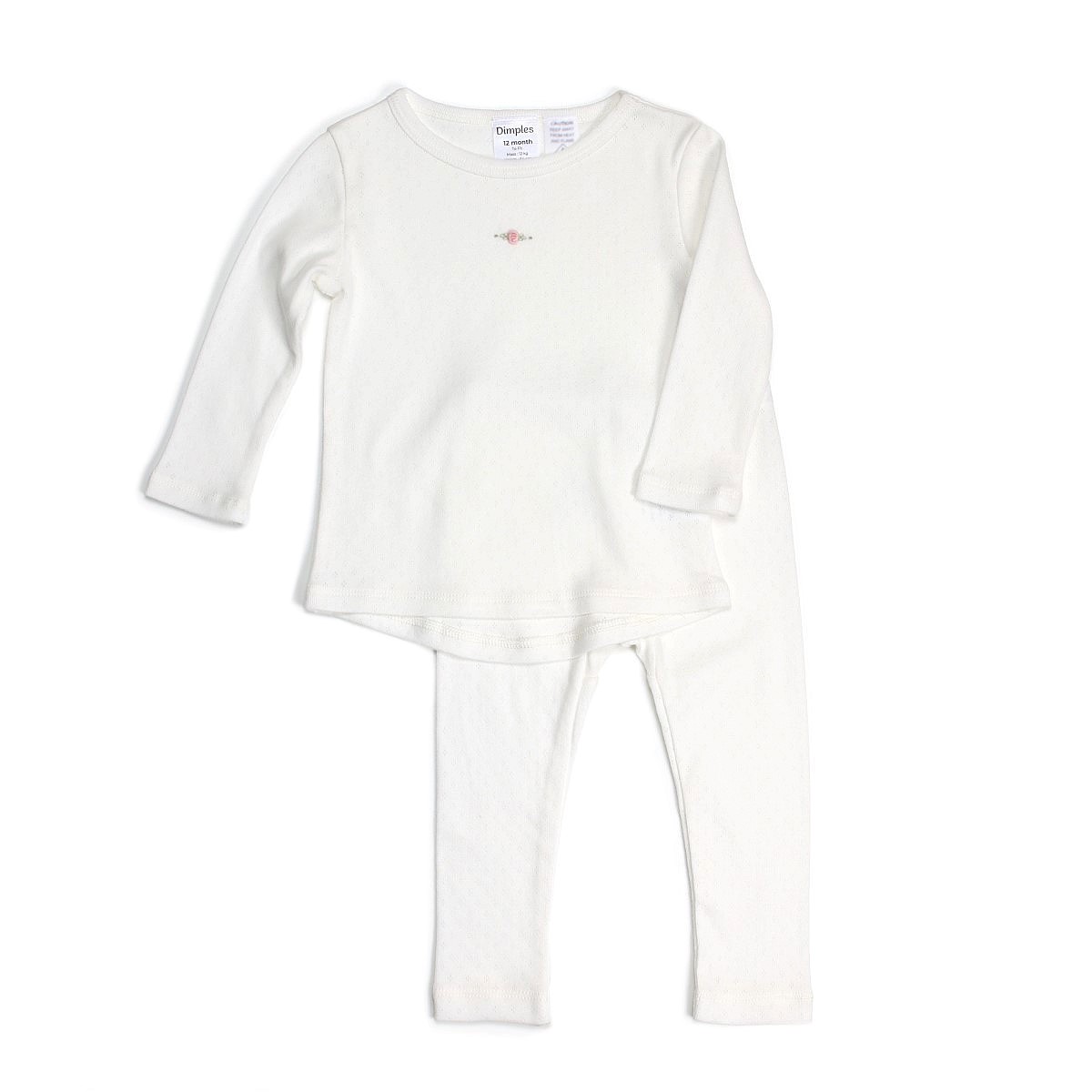 Dimples Natural Essentials Collection features a delicate pointelle design. The soft, breathable, and stretchy design makes it perfect for little ones of all ages. The classic styles and beautiful cotton fabric will be loved by you and your little one.