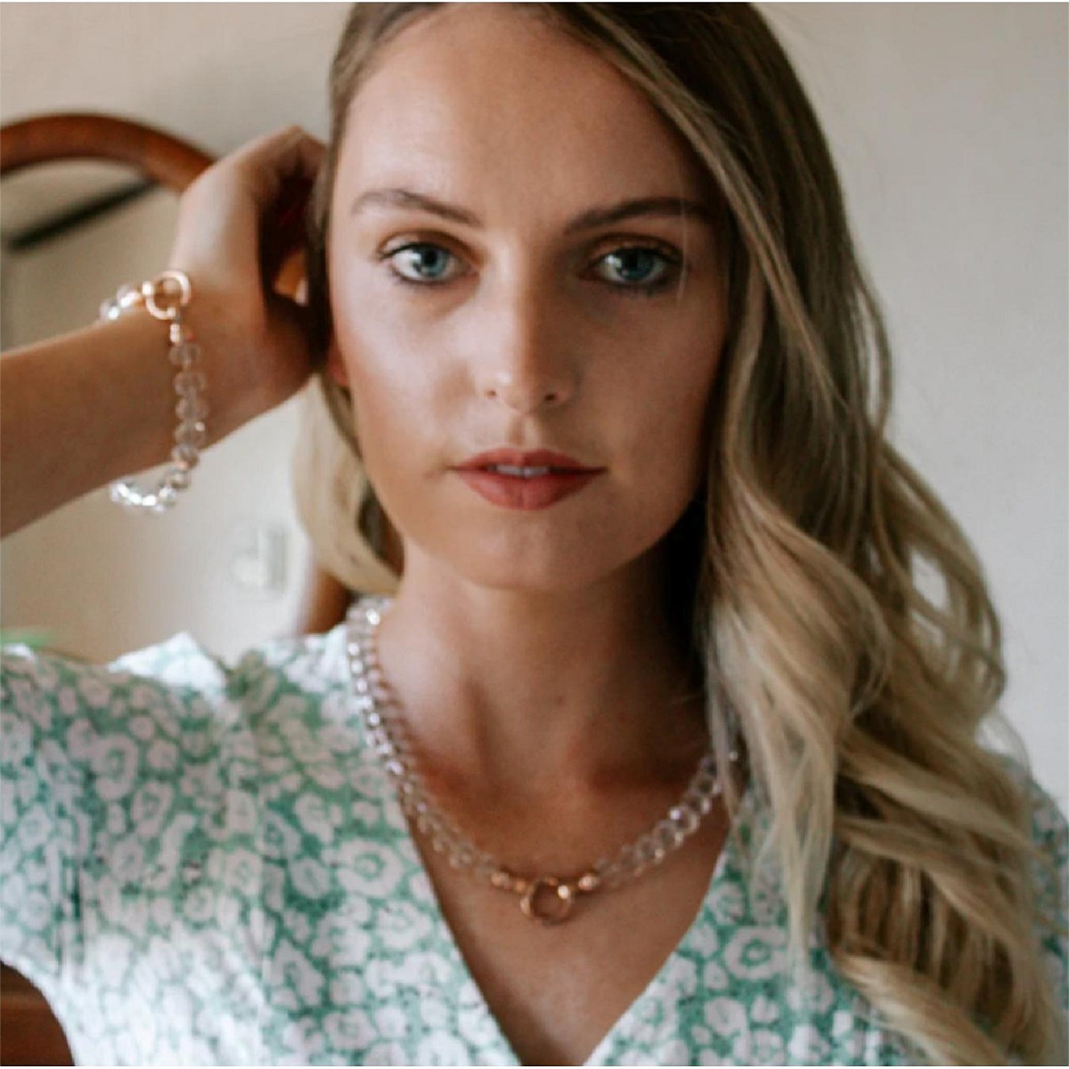Kagi's ROSE CRYSTAL OPERA NECKLACE, is sparkly and feminine! Hand crafted with 10mm clear crystal beads, complemented by Kagi's signature Rose Gold O-Link. Pair it with our matching Rose Crystal Opera Bracelet, to make a set!