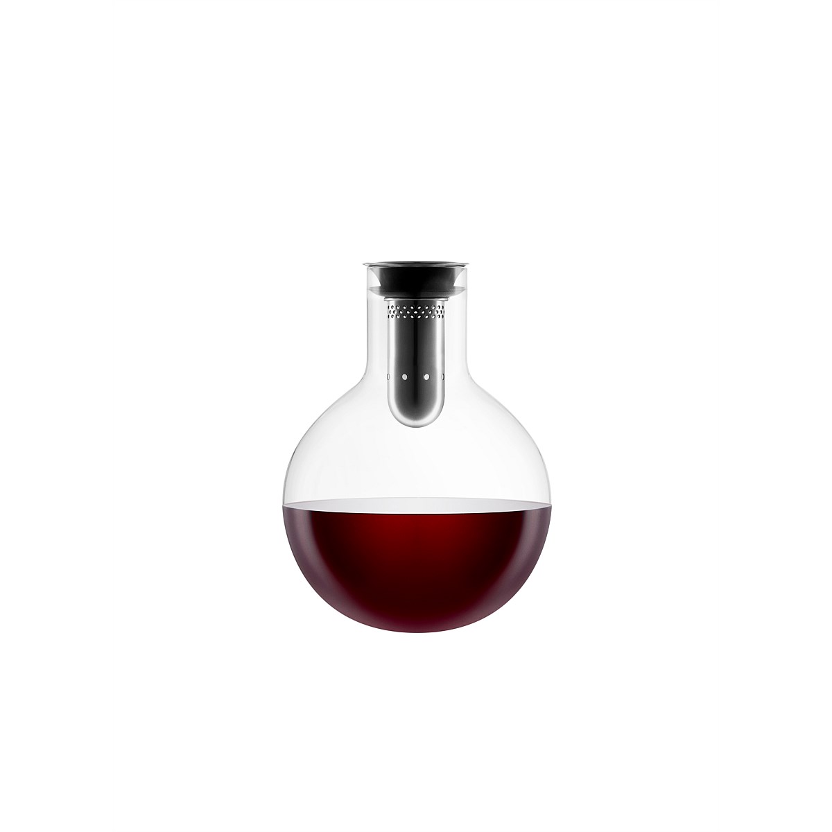 This decanter carafe brings out the best in a wine. When wine is poured into the carafe, it first runs through small holes in the integrated funnel, then down the inside walls of the glass. This process, in conjunction with the carafe's large surface area, quickly and effectively oxygenates the wine. Decanter Carafe holds one bottle of wine and is 100% drip-free.