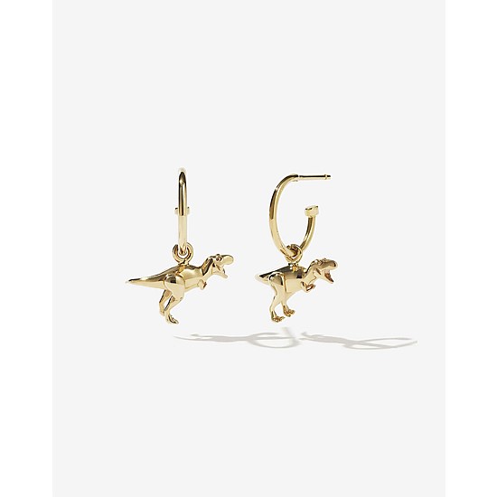 Our small and intricately-sculpted gold dino charm, suspended from a minimal signature hoop.