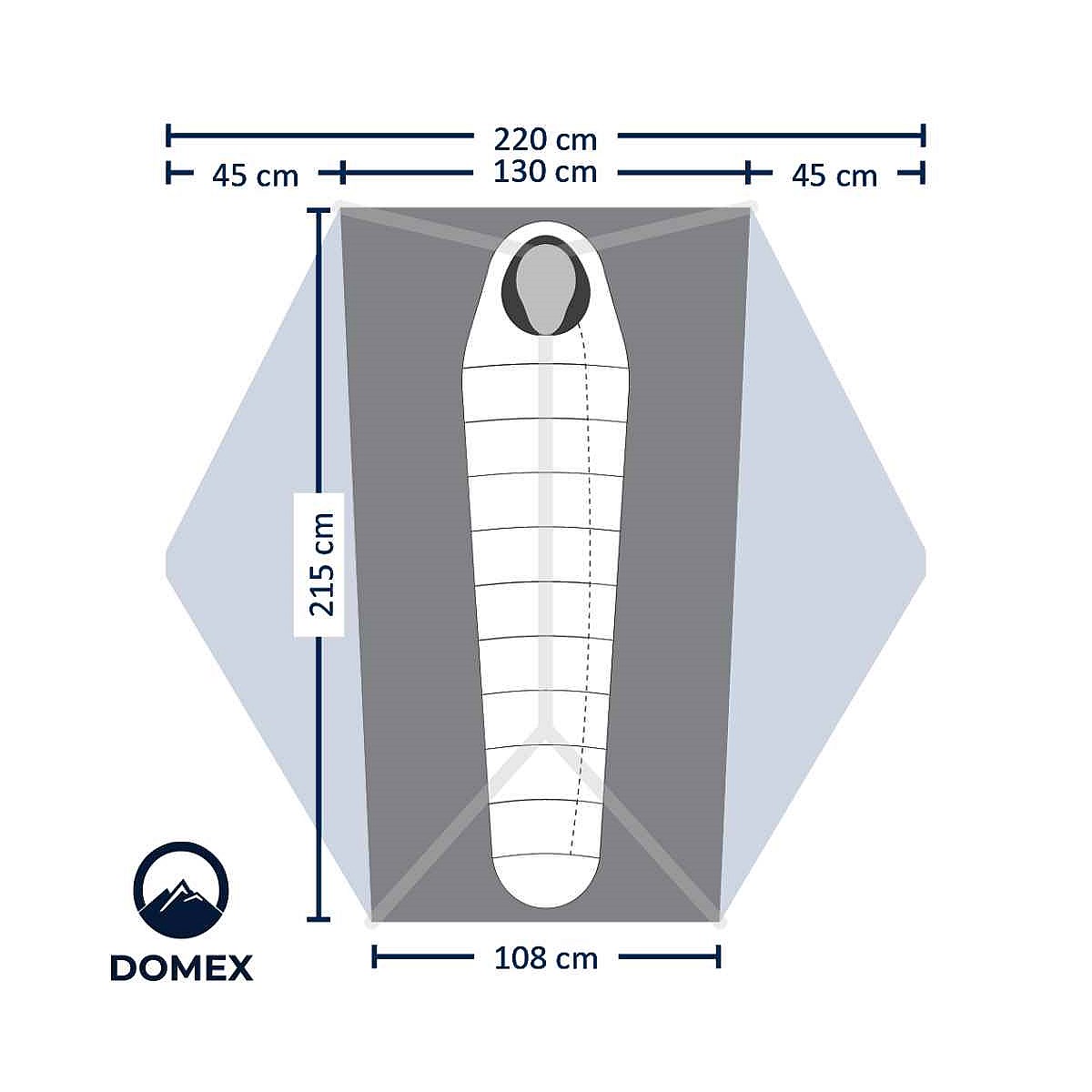 Like all Domex tents, the hub frame design means that the tent is quick and easy for one person to set up and being free-standing gives flexibility to erect the tent in all types of terrain, with the option of moving campsite before pegging the tent down.