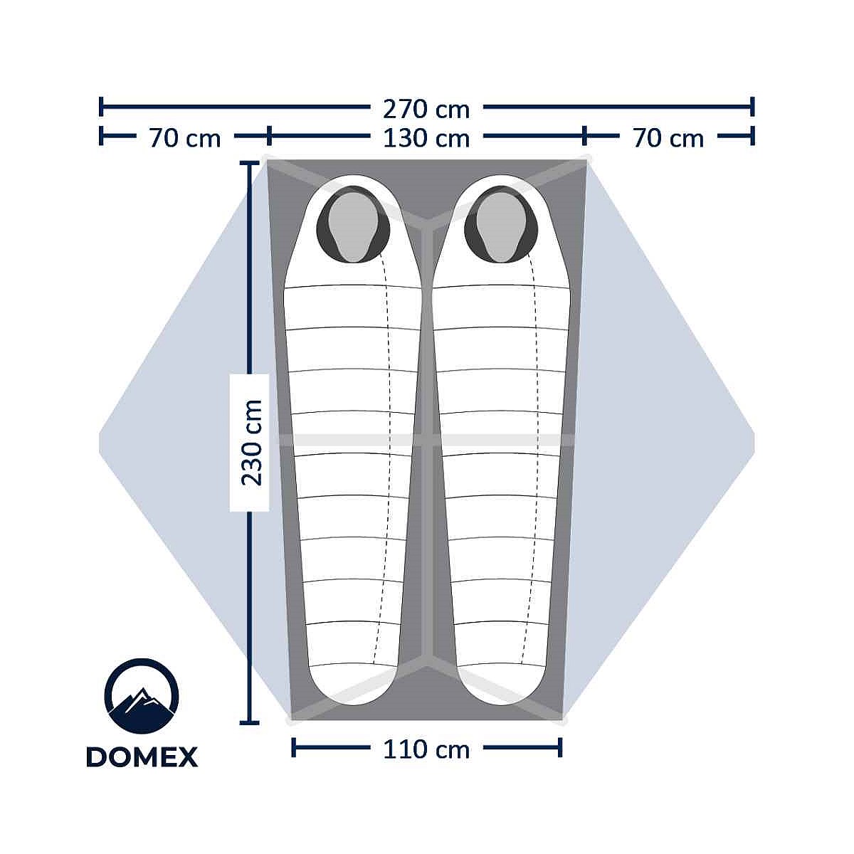 Like all Domex tents, the hub frame design means that the tent is quick and easy for even one person to set up and being free-standing gives flexibility to erect the tent in all types of terrain, with the option of moving site before pegging the tent down.