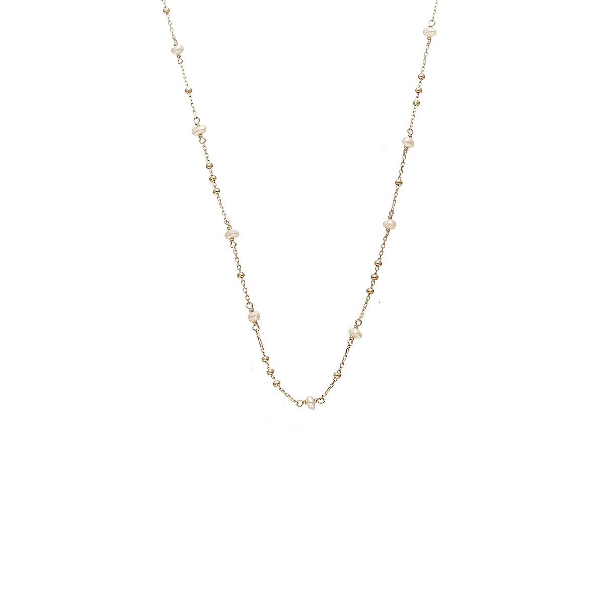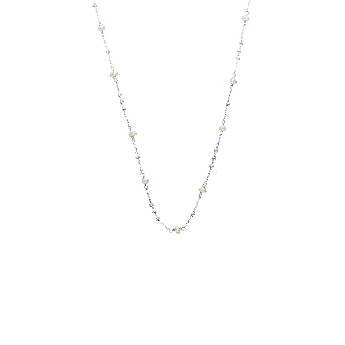 Handmade by artisans in rhodium-plated sterling silver, this delicate necklace features a fine curb ball chain detailed with miniature freshwater pearls, each symbolising purity, love and feminine strength.