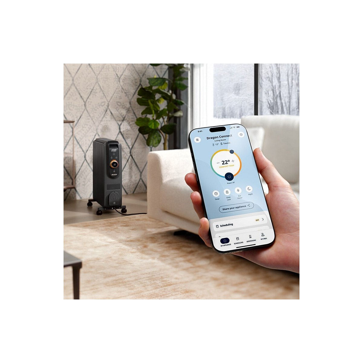 DeLonghi Dragon5 Connect is a 1500W oil filled column heater designed to deliver steady, silent warmth with precise temperature control. It features a digital LED interface, automatic power modulation, and WiFi app control so you can manage heat and schedules from your phone.