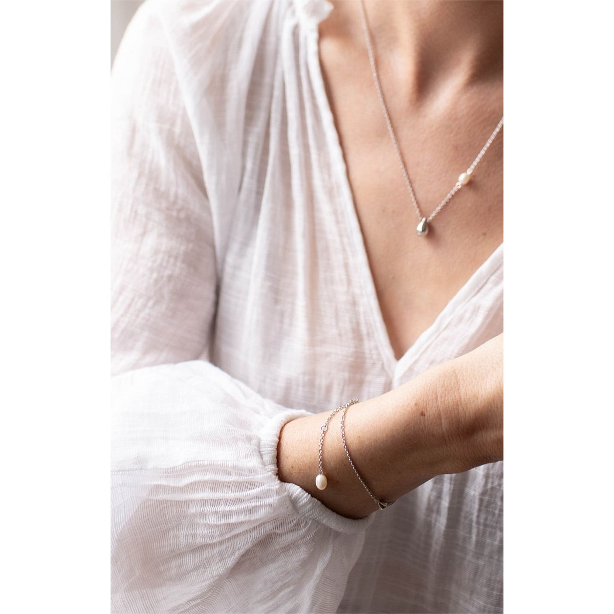 Romantic and timeless, the Drop In The Ocean Moon Glow Bracelet is a stunning sterling silver piece with a classic pearl and a droplet in motion.