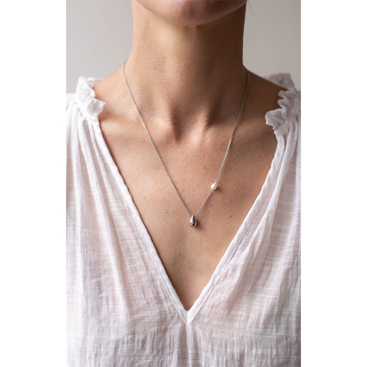 Romantic and timeless, the Drop In The Ocean Moon Glow Pendant is a stunning sterling silver piece showing a droplet captured in motion, with classic pearl set into the chain.