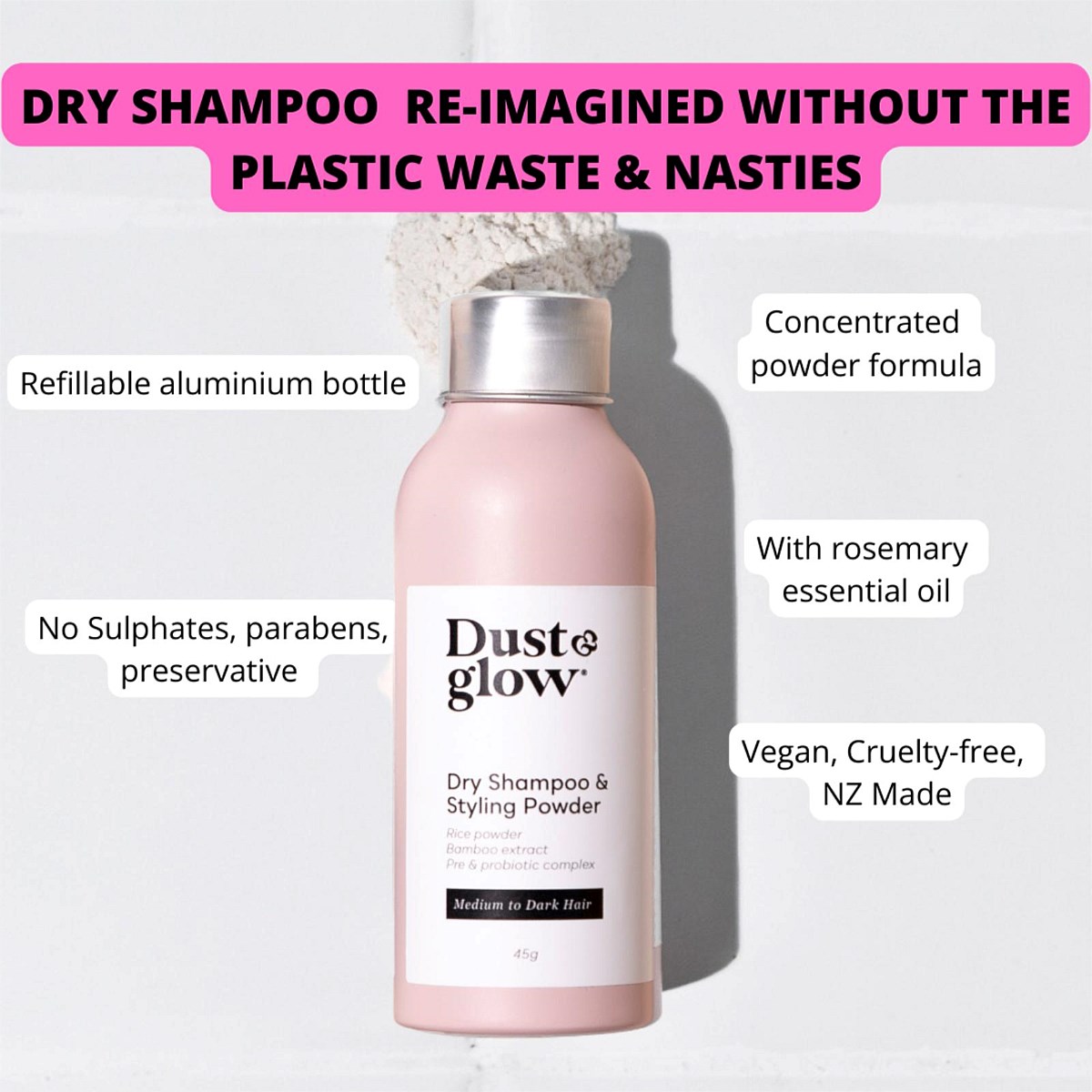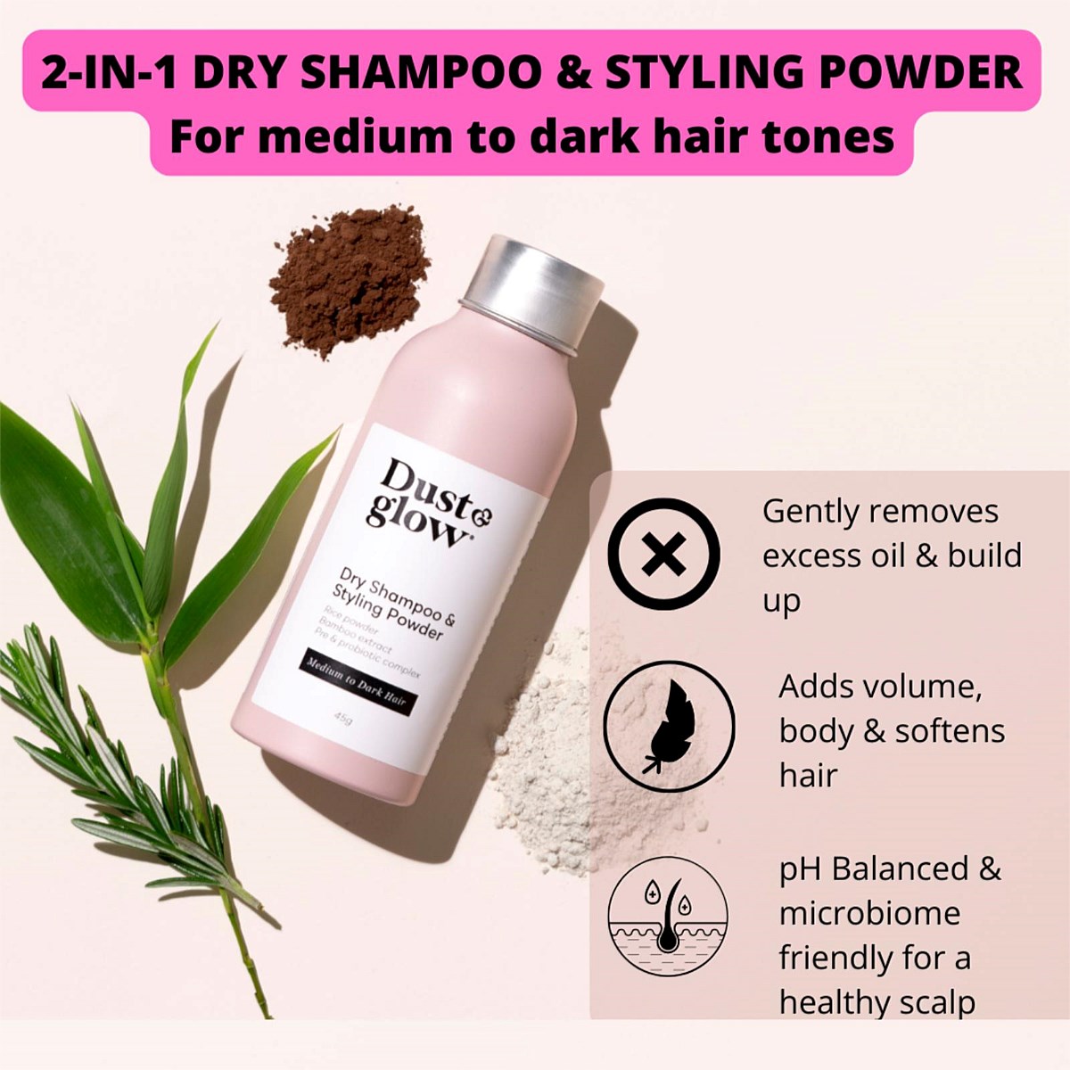 Refresh Your Hair with our multifunctional Dry Shampoo & Styling powder - For medium to dark hair, ideal for Brunettes