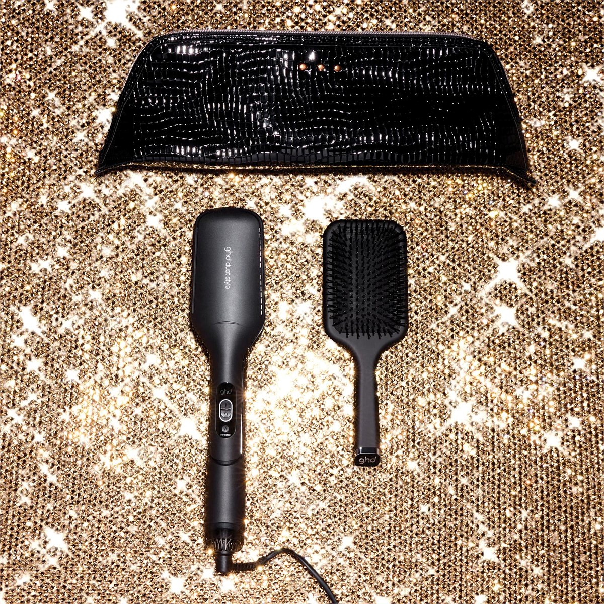 Accompanied by the ghd The Dresser oval dressing brush, crafted with anti-static nylon bristles to polish and perfect your finished look, and a heat-resistant bag and mat2 for safe storage and travel, this gift set is the ultimate blend of professional performance, everyday ease, and festive luxury.