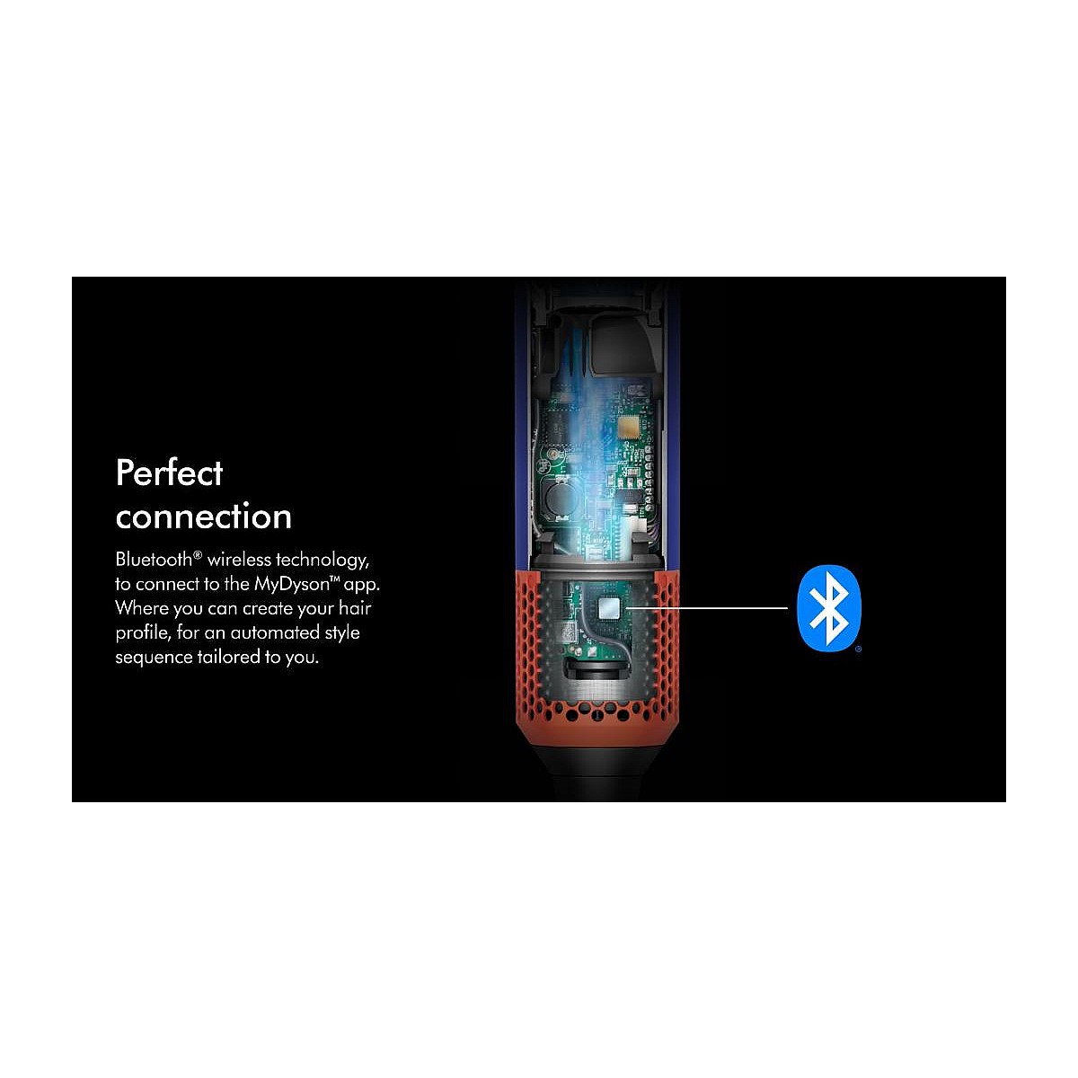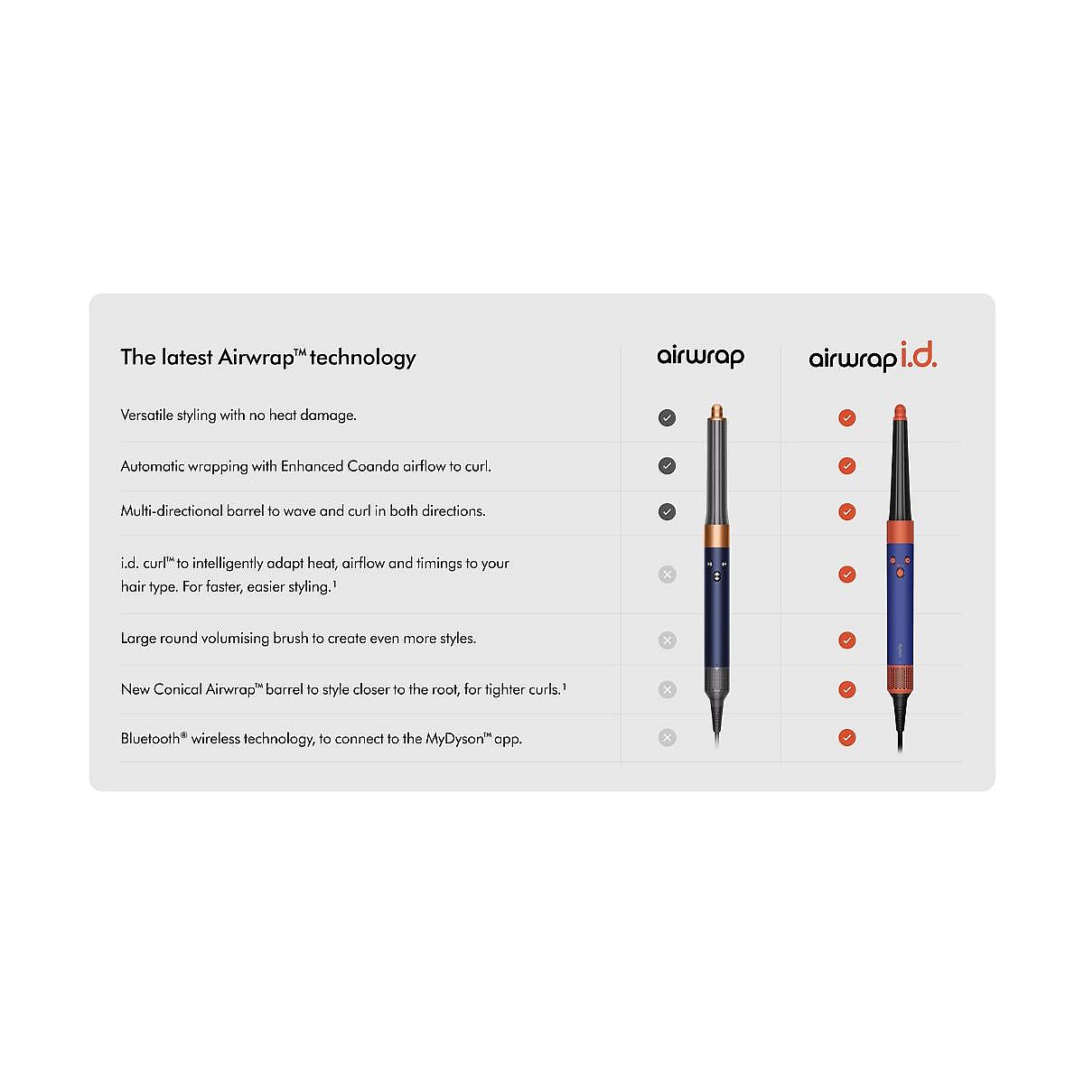 Drying and styling your hair has never been easier. Recommends and automates a personalised curling routine according to your hair and styling profile with i.d.curl™ via the My Dyson™ app.