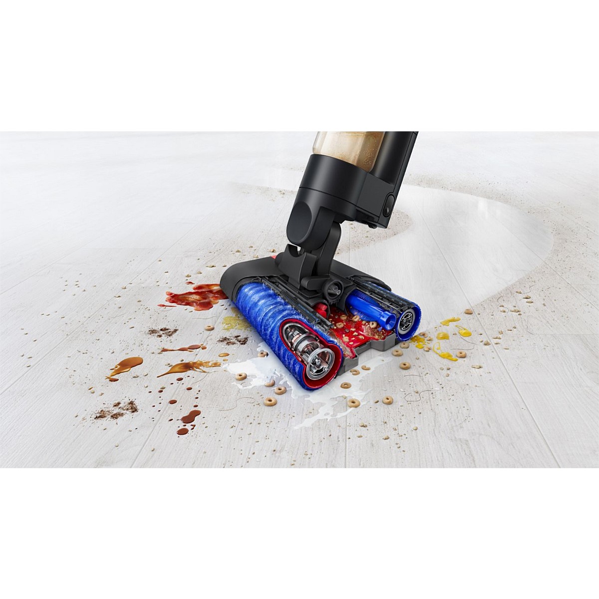 - Powerful, Hygienic Washing: Simplify your daily chores with the Dyson WashG1 Wet Floor Cleaner! Equipped with a highly absorbent microfibre cover and two counter-rotating motorised rollers, this machine expertly tackles wet and dry dirt as well as spills and stubborn stains on hard floors—all in one go 1. Now you can leave your floors sparkling clean on every pass! - Clean Water, Spotless Floors: Wash using clean water from start to finish! This Dyson machine features 26 pulse-modulated hydration points, evenly distributing clean water across the rollers. It can also cover areas of up to 290sqm using just one tank of water2, allowing you to enjoy minimal refills and maximum coverage on various parts of your home. - Effortless Operations: This unit’s double rollers spin in opposite directions, making it easy to glide and manoeuvre around. You can also utilise it to clean low under furniture and into awkward spaces, so you can rest assured that you won’t miss a spot. - Tailored Cleaning Modes: Enjoy precision-controlled hydration! This hard floor cleaner equips three modes (Level 1, Level 2, and Level 3), letting you set the perfect hydration level to handle any task. Now you can easily tackle messes such as light spills, sticky liquids, and dried-on stains. - Long Run Time: This floor cleaner boasts a click-in battery with four lithium-ion cells, delivering up to 35 minutes of floor washing power3. - Innovative Waste Disposal: Experience simple, hygienic waste disposal. This Dyson WashG1 Cleaner’s secondary brush bars with nylon bristles intuitively take off dry debris from the microfibre rollers, all while its extraction plates squeeze off the dirty water. It then collects the debris in a removable tray, whereas its waste liquid is pumped into a separate dirty water tank to prevent buildup inside the machine which can lead to odour emissions. - Hassle-Free Maintenance: Maintenance is easier than ever, as this unit highlights a self-clean cycle that flushes the entire system in just 140 seconds. Simply place it on the included charging dock, and let it clean itself while simultaneously replenishing its batteries. Now it’s ready for your next floor scrubbing session!