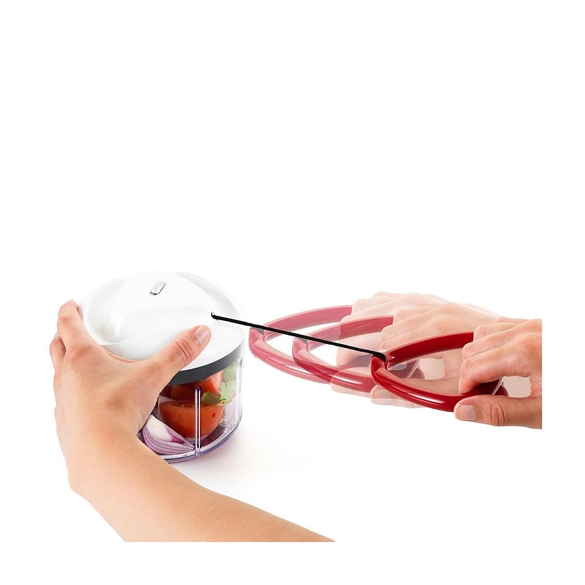 A completely manual food processor that has a patented design allowing you to chop, mix, blend and puree food with ease and consistency. Simply pull the handle 3-5 times for a coarse dice and 8-10 times for a finer dice. Since 1951, Zyliss has been creating tools and gadgets to meet the growing needs of consumers worldwide. With over 70 years of experience in designing quality food preparation tools and gadgets, it is easy to see how Zyliss has become an internationally respected brand that's favoured by everyday cooks as well as gourmet chefs.