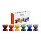 Simple but glorious, boiled eggs bring a ray of sunshine to your morning table. Just like this striking stoneware egg cup set, from our rainbow hued Breakfast Collection. Cerise. Volcanic. Soleil. Palm. Teal. Ultra Violet. These six colours come together to radiant effect.