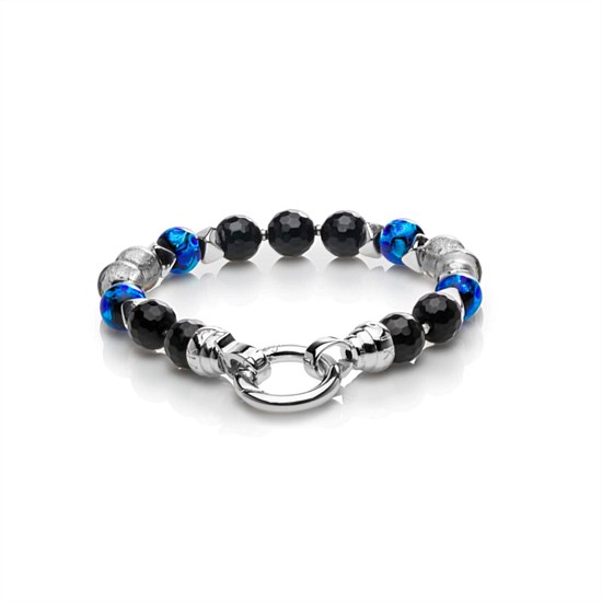 Length: 19cm; Materials: 8mm murano style beads, polished rhodium components with signature Kagi O Link clasp