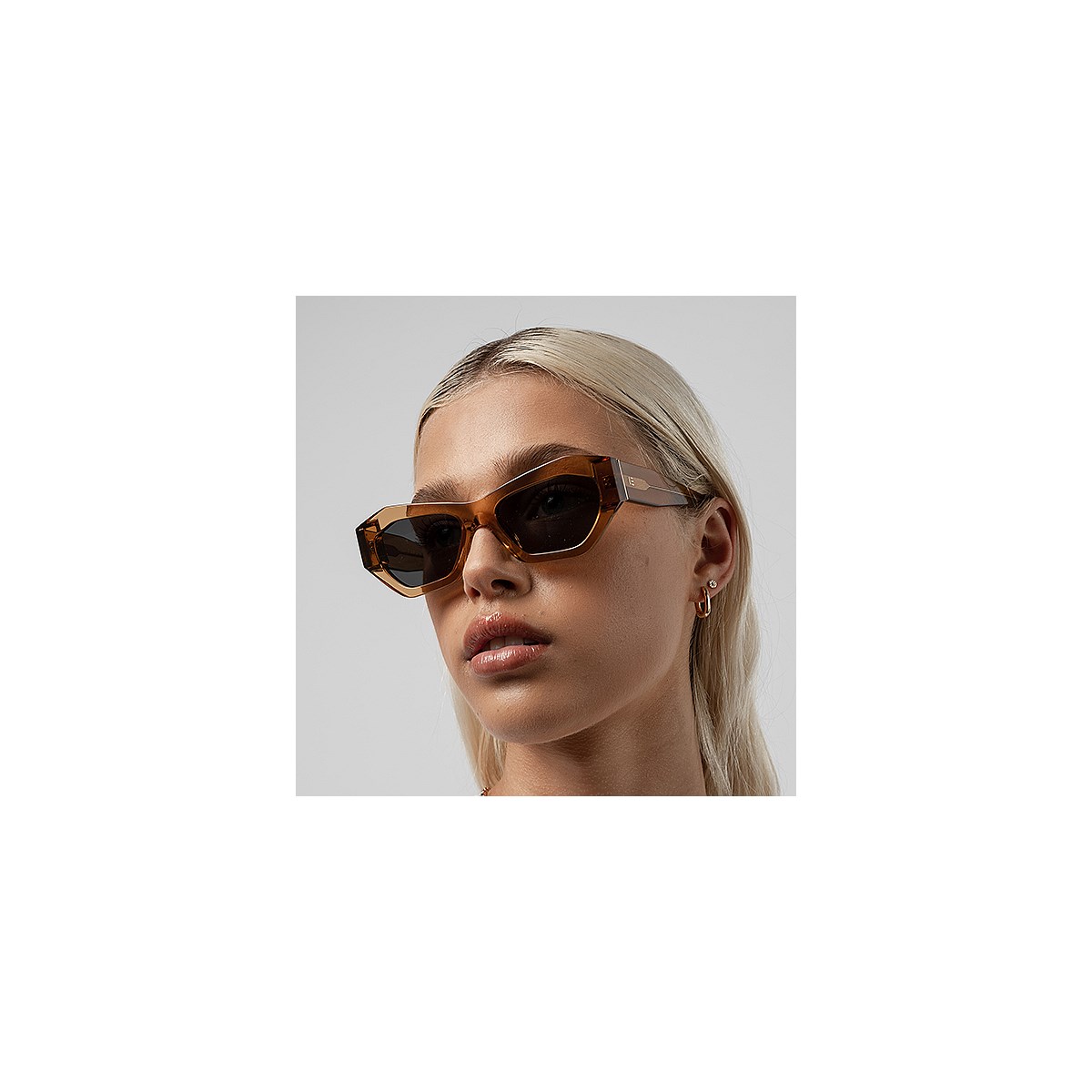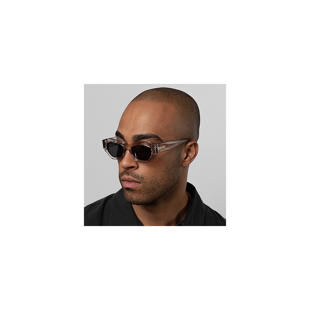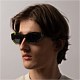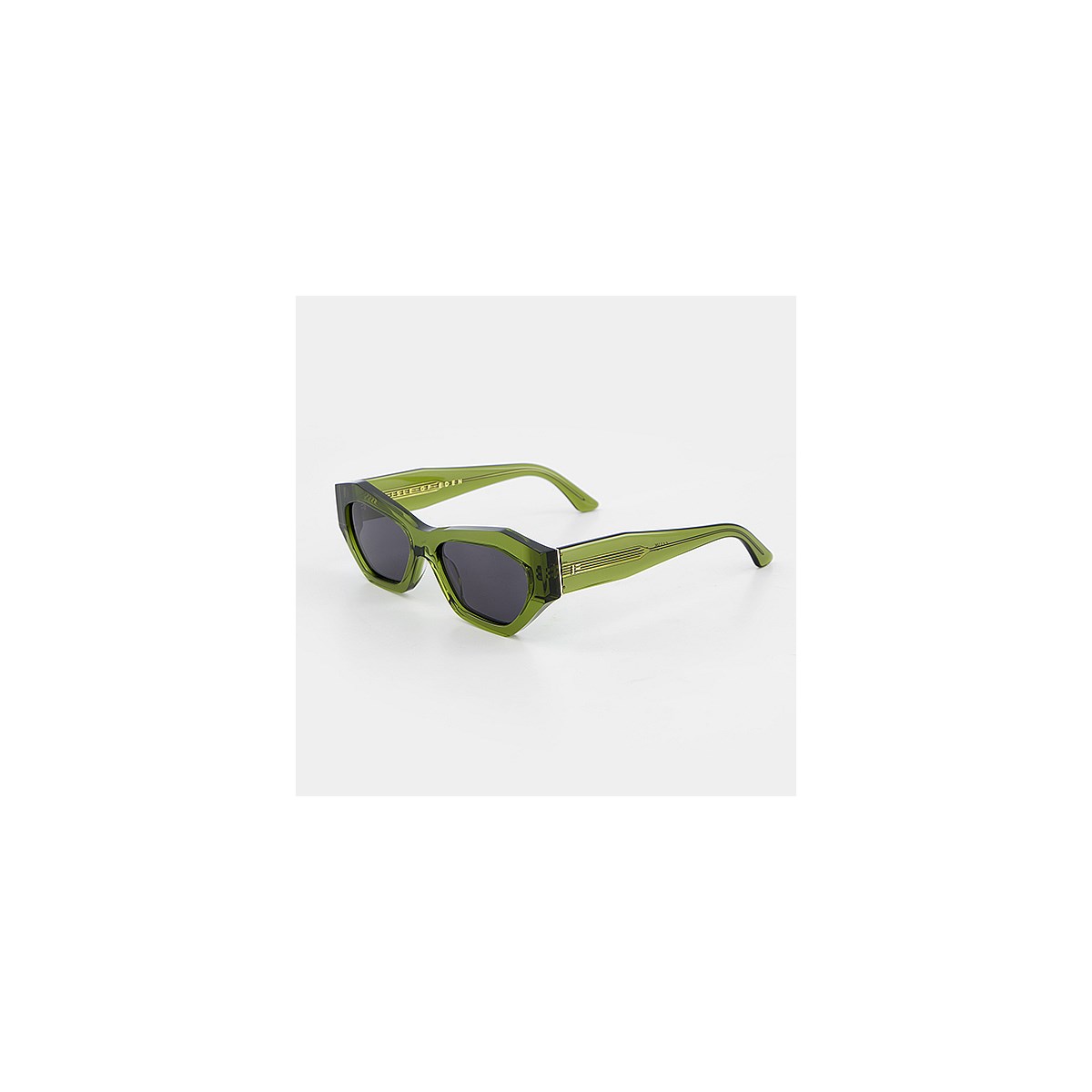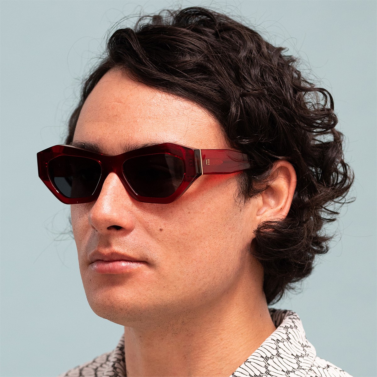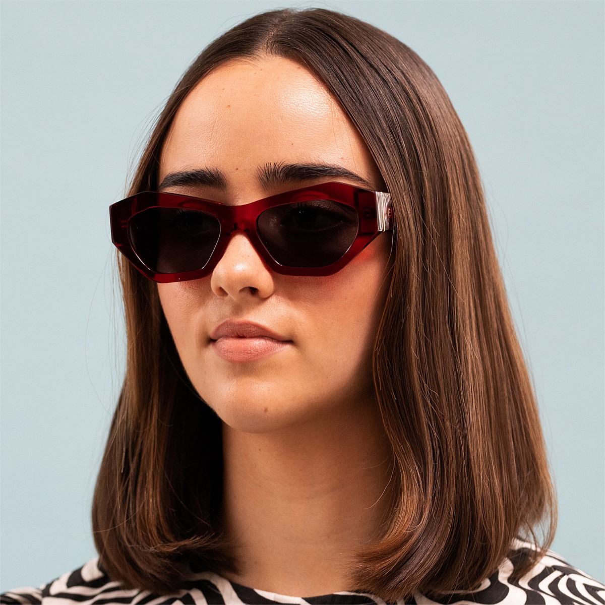 The Emily is defined by sharp lines and an architectural silhouette, its crisp angles and flat bridge creating a bold yet refined profile. Engraved temple caps and subtle detailing elevate the frame, giving it a distinctly contemporary character.