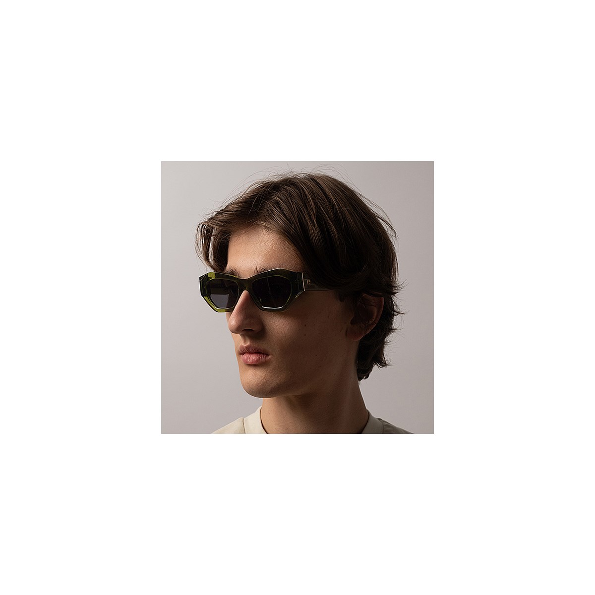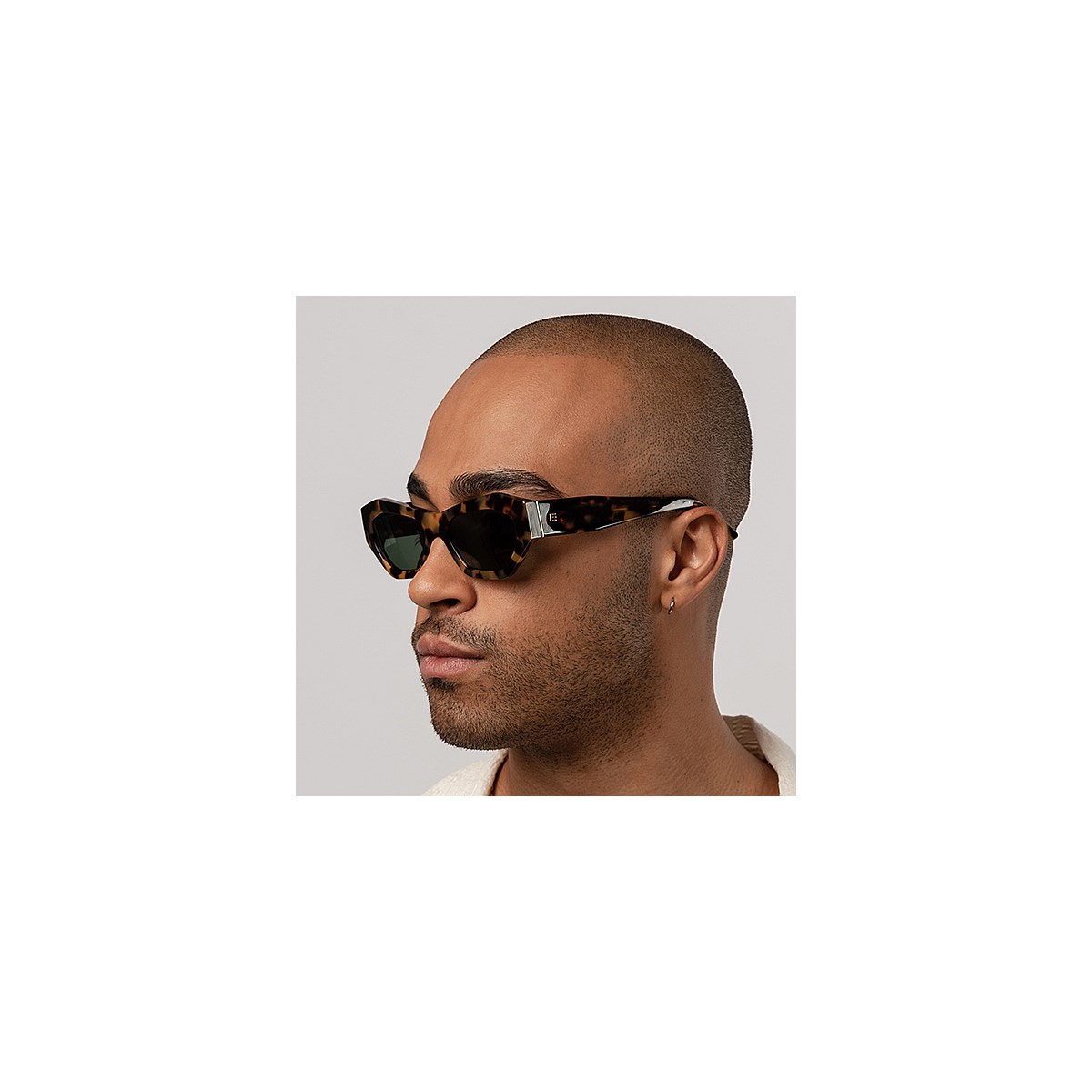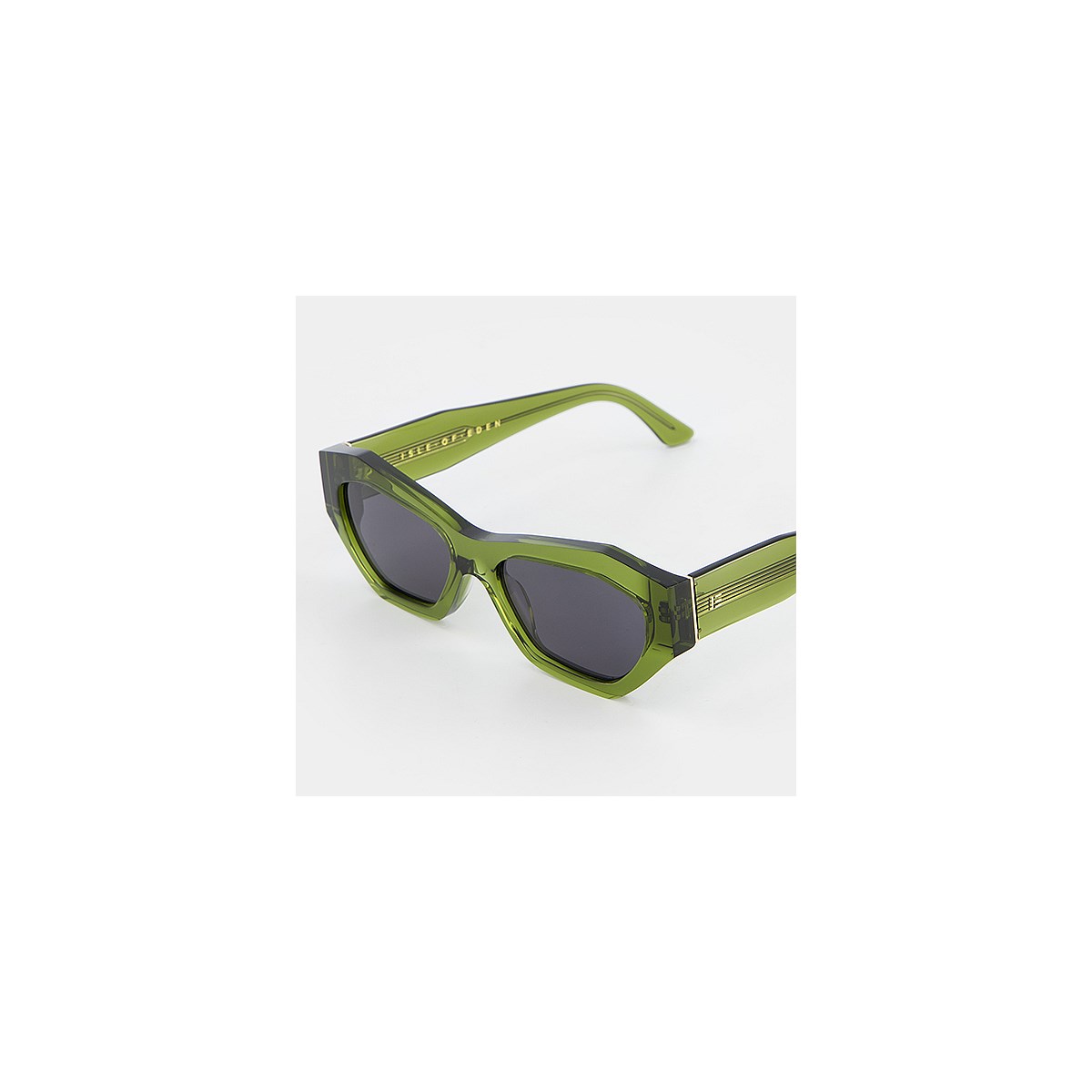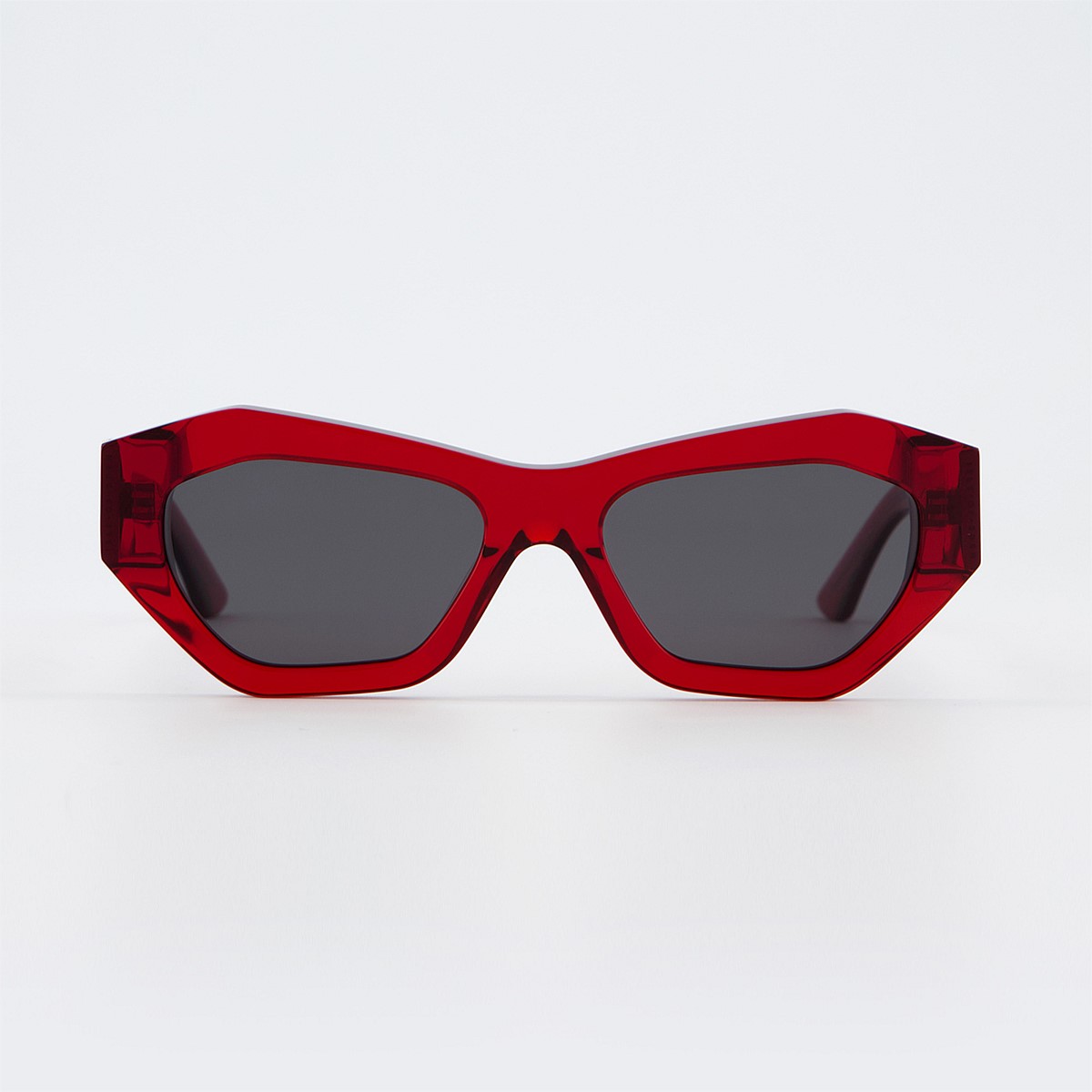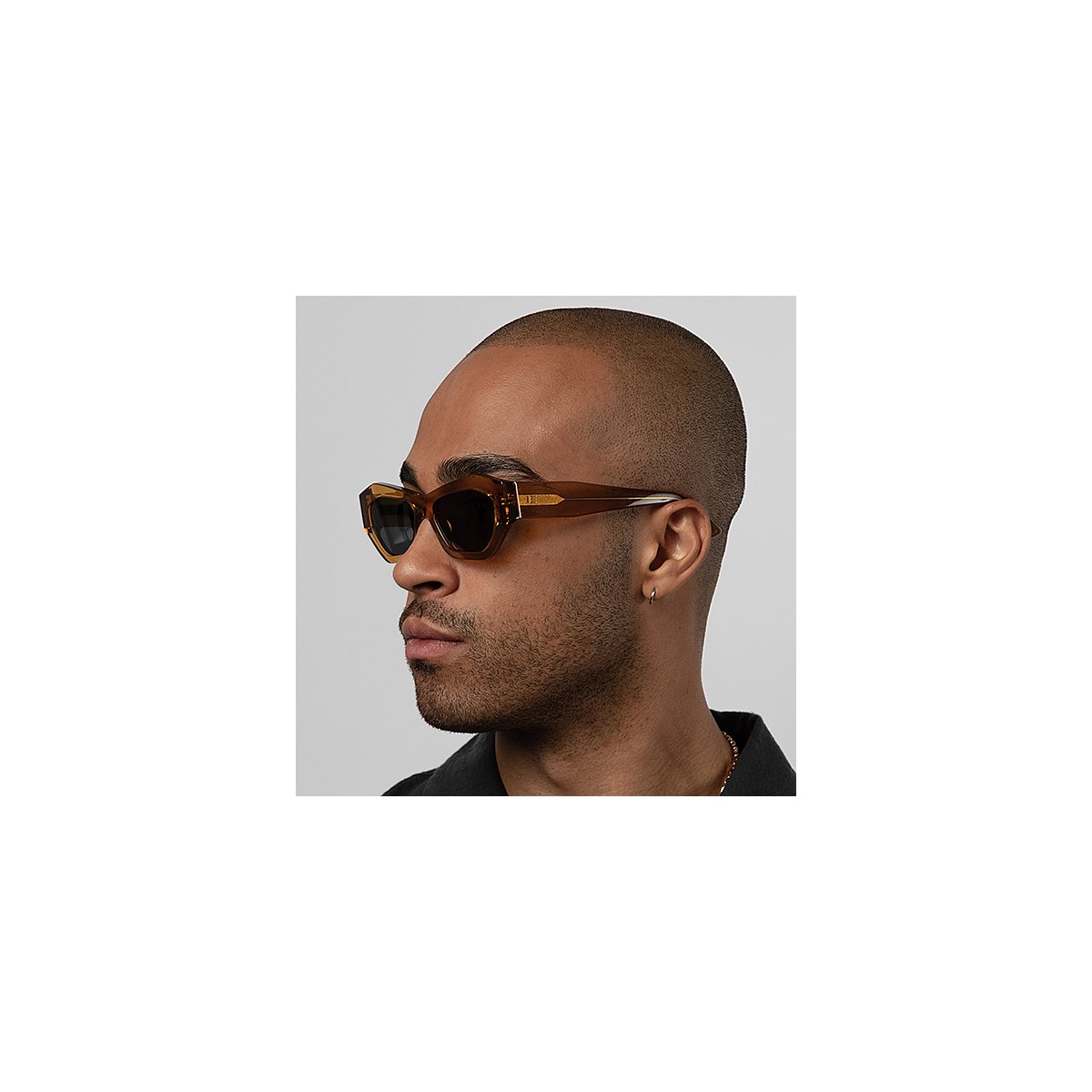 The Emily is defined by sharp lines and an architectural silhouette, its crisp angles and flat bridge creating a bold yet refined profile. Engraved temple caps and subtle detailing elevate the frame, giving it a distinctly contemporary character.