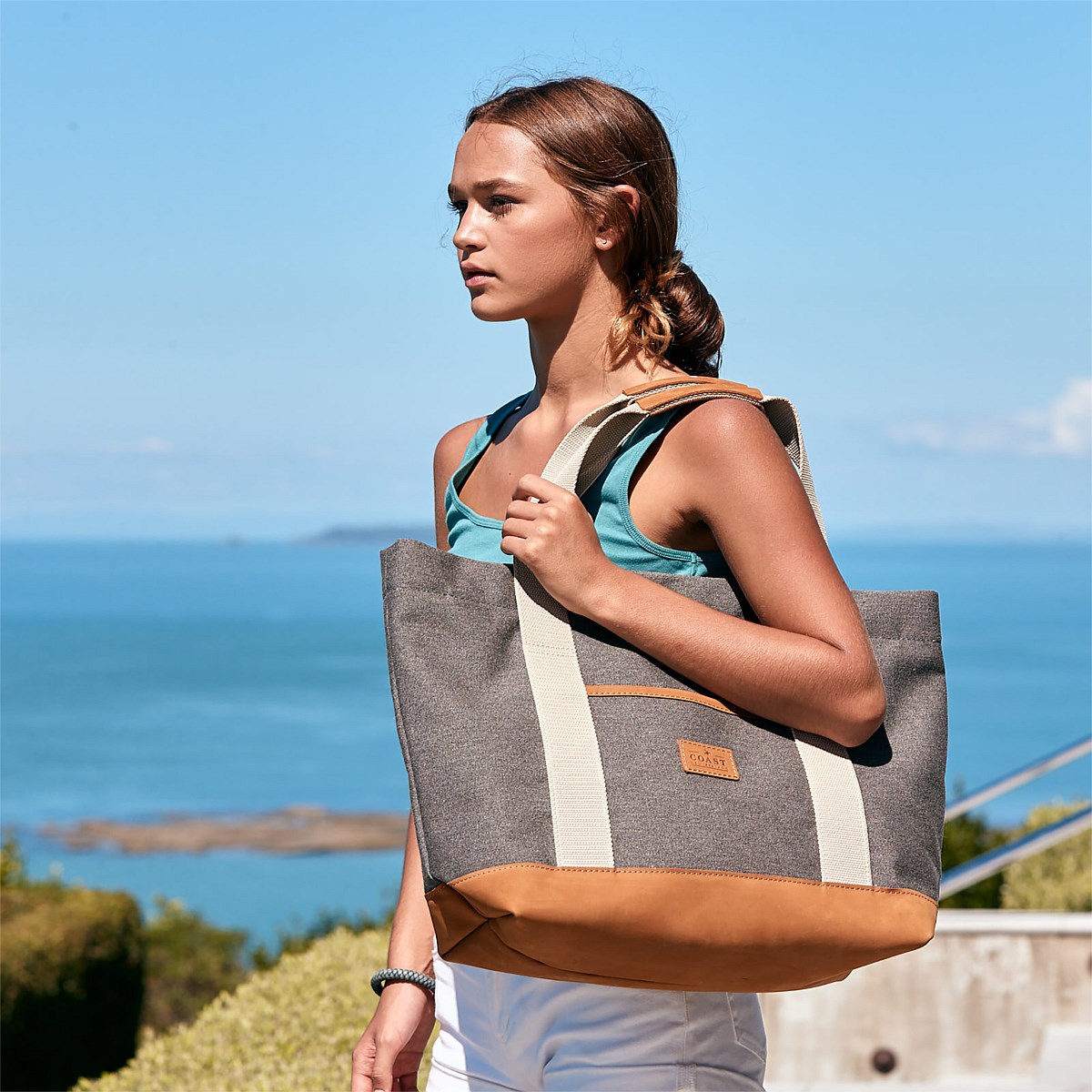 COAST's classic Day Bag, is hand crafted in New Zealand from Sunbrella fabic and sport's a full leather base for extra durability. Whether commuting to the office or for a day on the water, this fully lined bag with take you there in style.