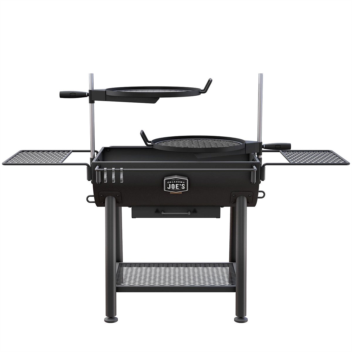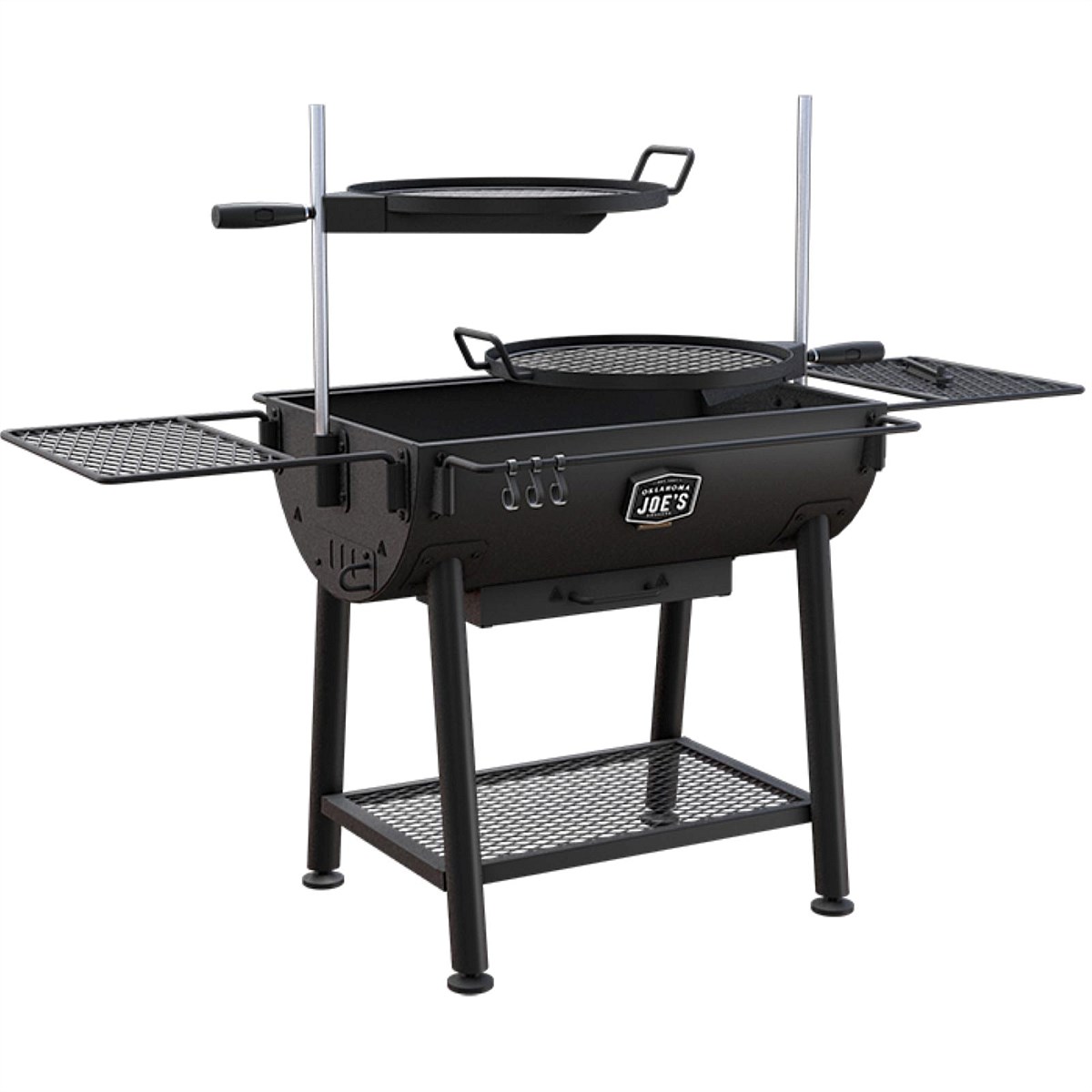 Bottom shelf to keep extra wood or cooking utensils close-at-hand