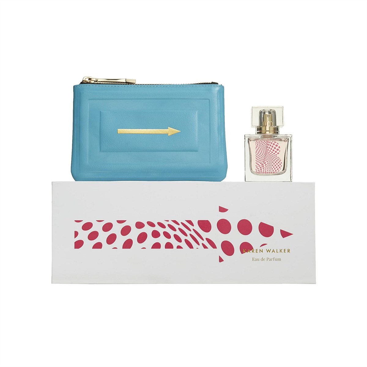Karen Walker B is feminine and efflorescent, a lush, ripe and delicious floral gourmand eau de parfum. Like a warm, balmy breeze after the heat of the day, this fragrance is brimming with possibilities. Bergamot, Sambac Jasmine and iris combine with praline, patchouli, musk and vanilla.This gift set comes with a B 50ml and a turquoise leather purse.