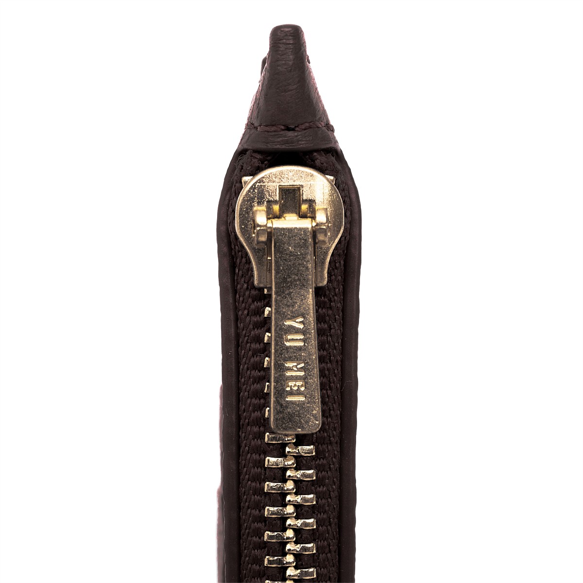 The swiss army knife of the wallet world, the Frank Cardholder carries only the essentials, slips discreetly into a pocket, and is suitably equipped for anything. Classic portrait card holder shape with multiple card slots and a zipped compartment, rendered in premium Italian Croc-embossed cowhide. Cotton Drill Lining. Custom Yu Mei branded YKK zip.