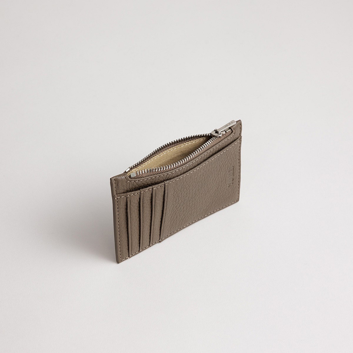 The Frank is a versatile cardholder with a zipped edge. Frank slips discreetly into a pocket, and features four card slots and compartments for notes and coins. Rendered in premium New Zealand Deer leather.