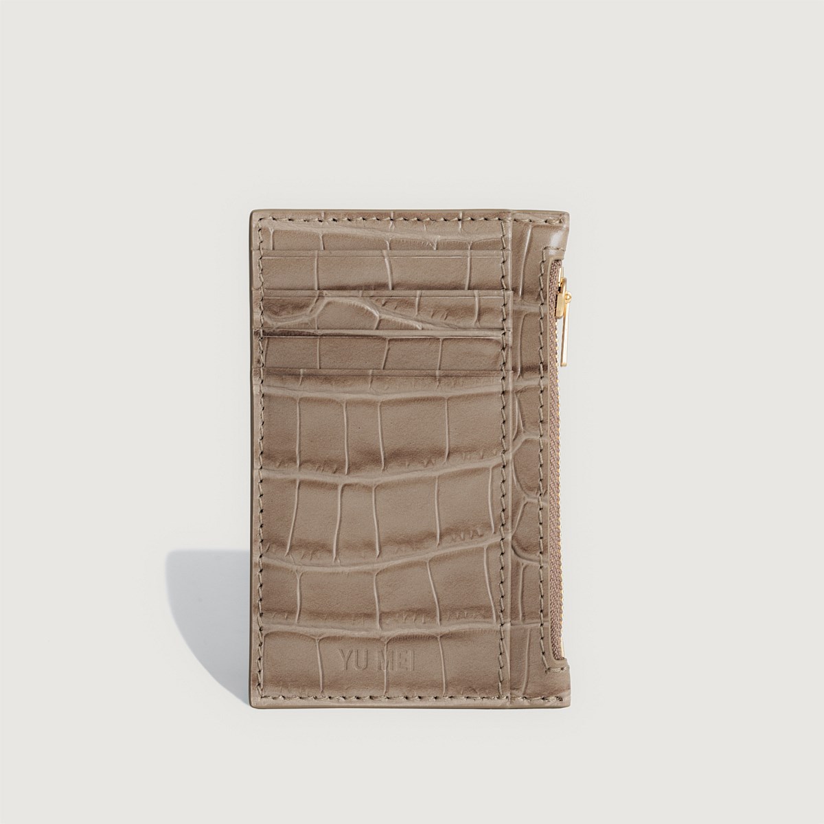 Frank is a man of few words, but what he does say, he means. The swiss army knife of the wallet world, the Frank Cardholder carries only the essentials, slips discreetly into a pocket, and is suitably equipped for anything. Classic portrait card holder shape with multiple card slots and a zipped compartment. Premium croc-embossed cowhide with cotton drill lining and custom YKK zip.