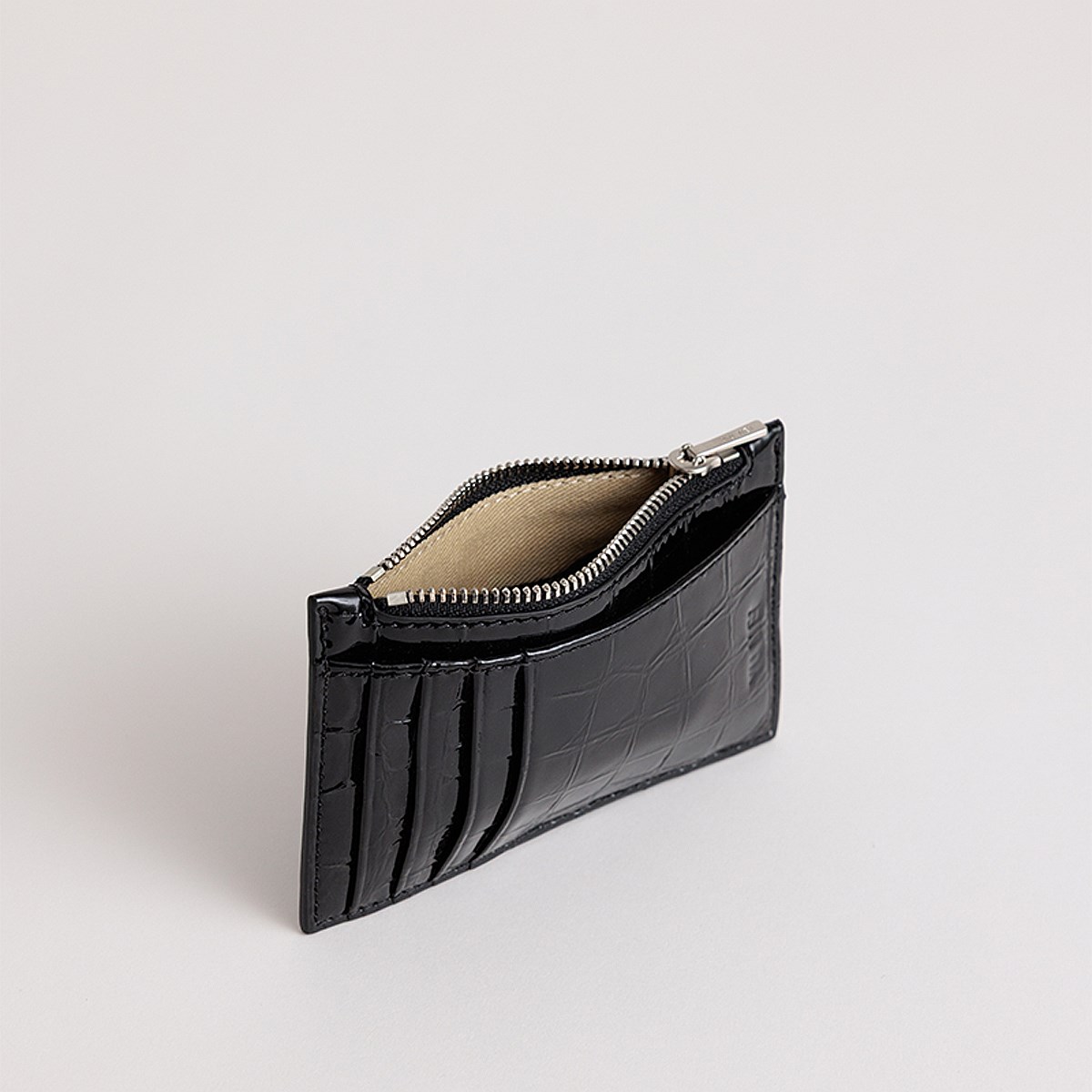 Frank slips discreetly into a pocket, and features four card slots and compartments for notes and coins.