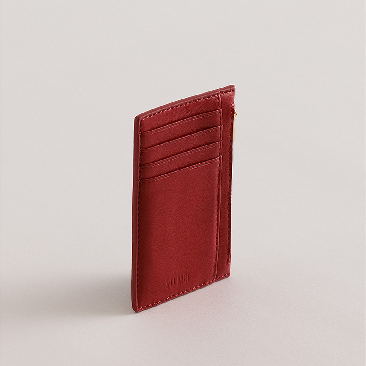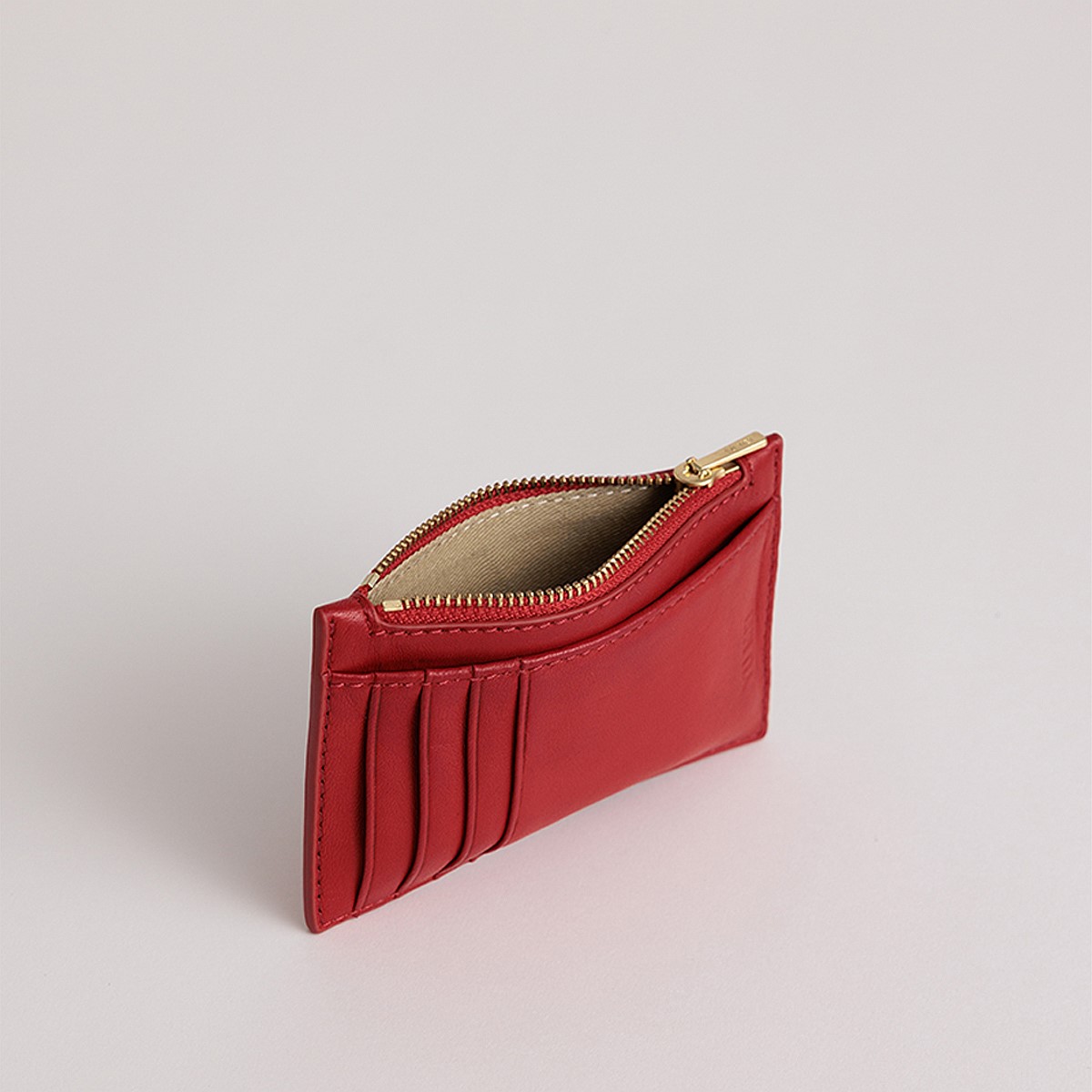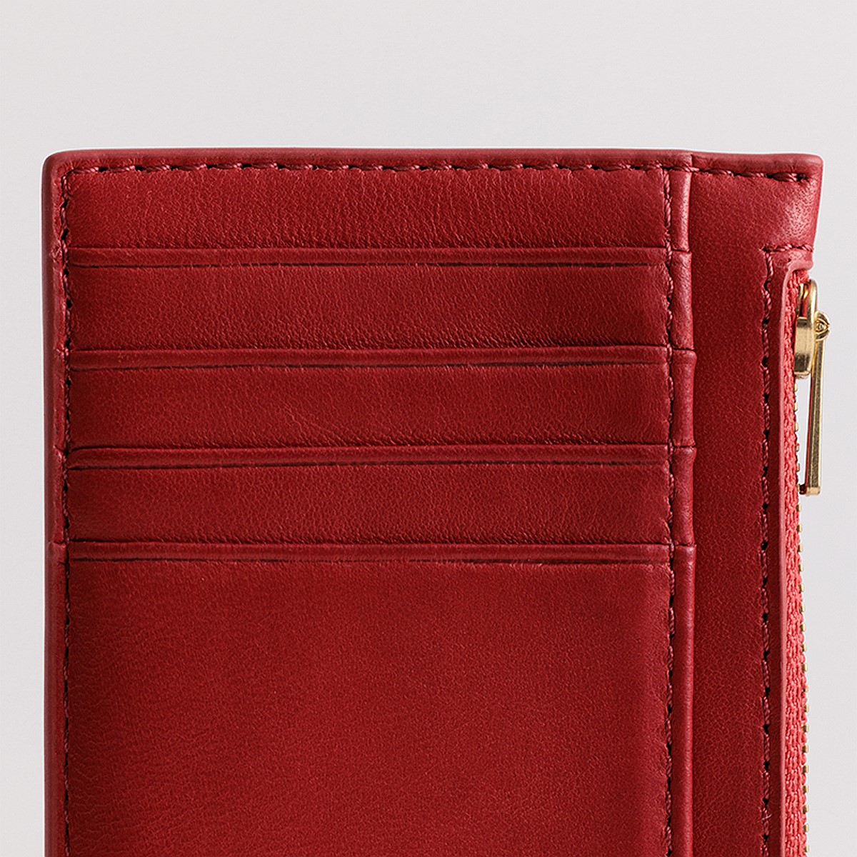 Frank slips discreetly into a pocket, and features four card slots and compartments for notes and coins.