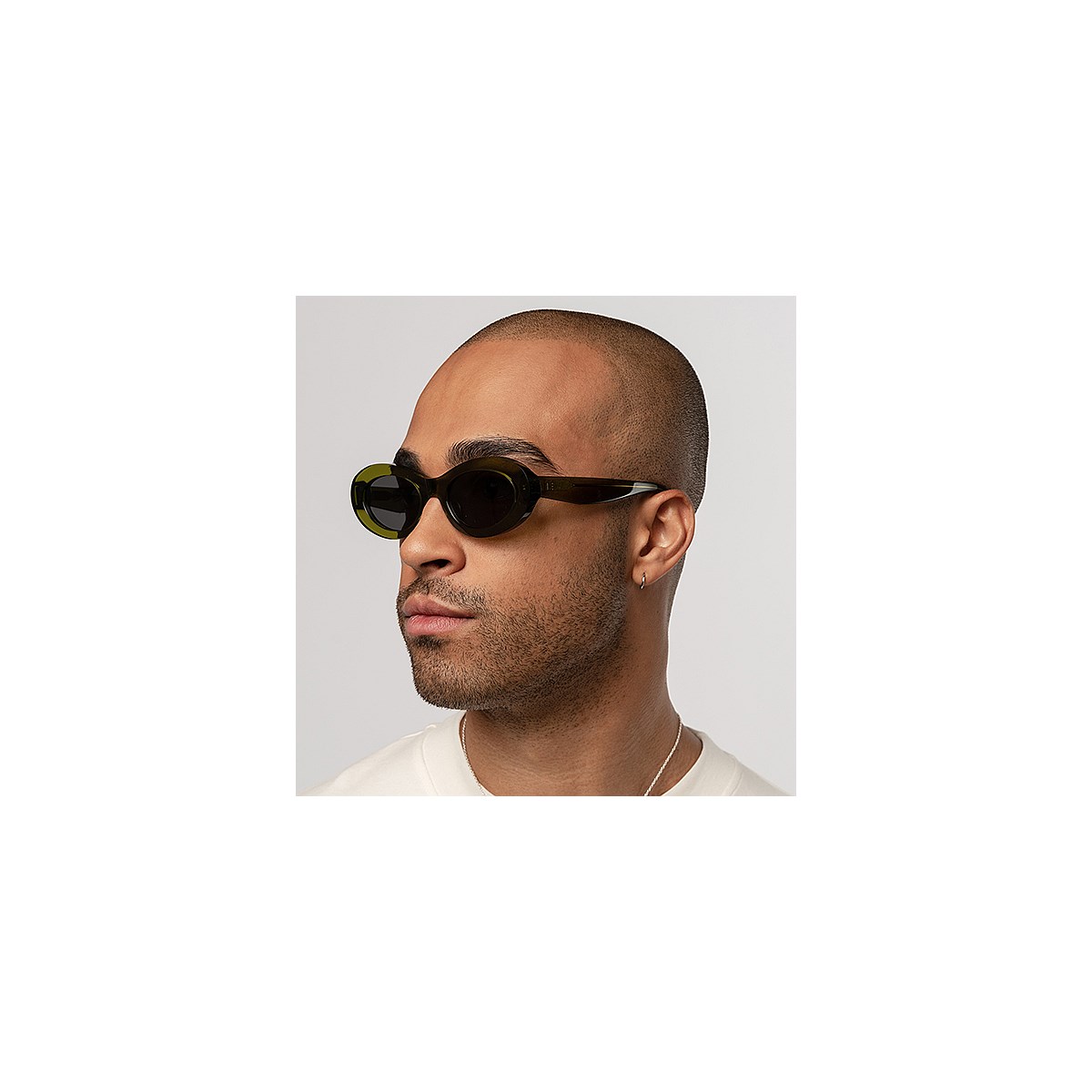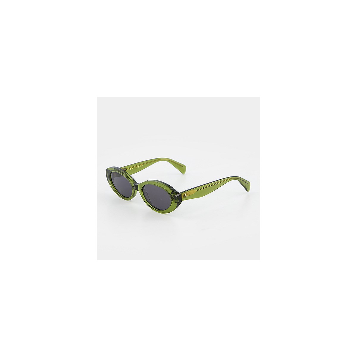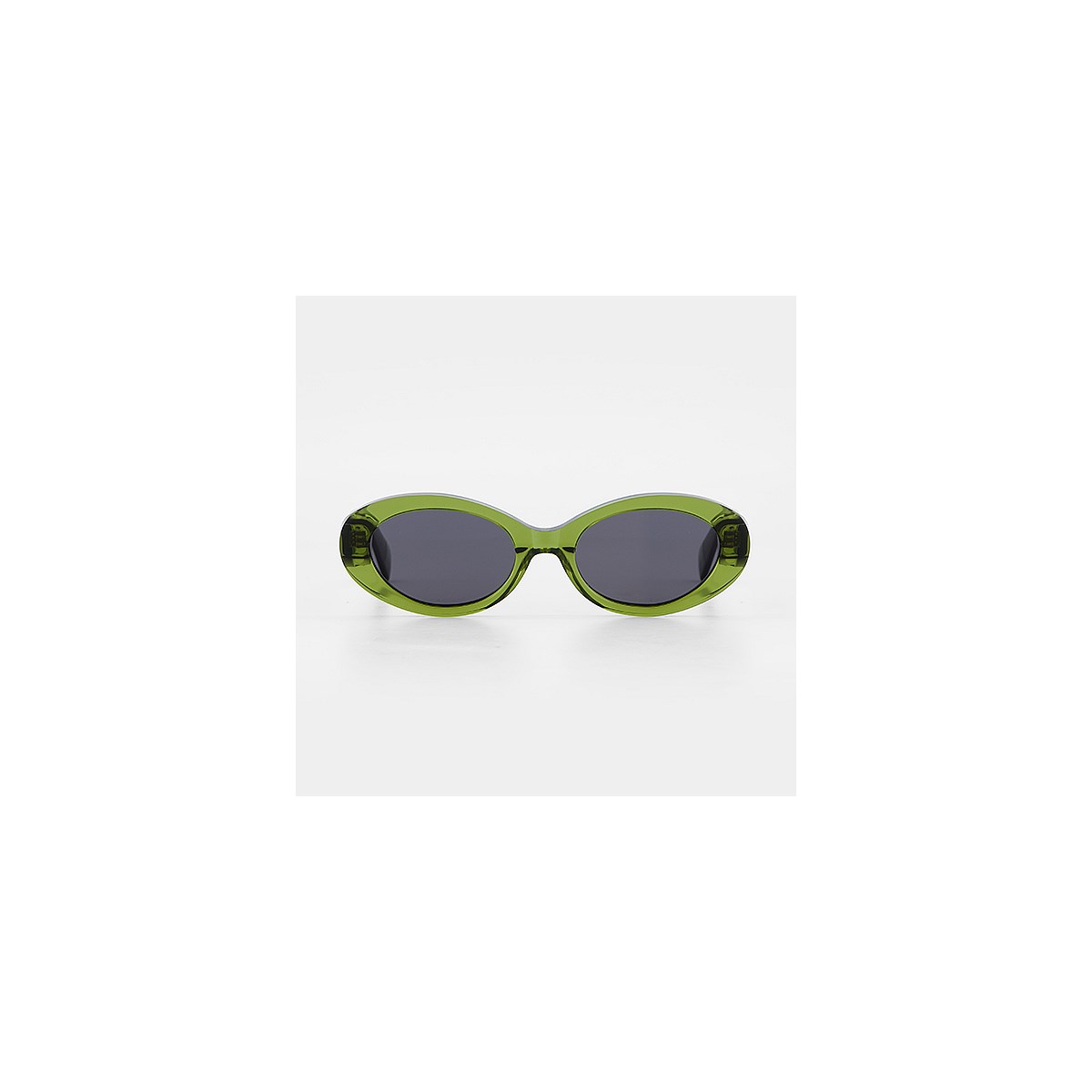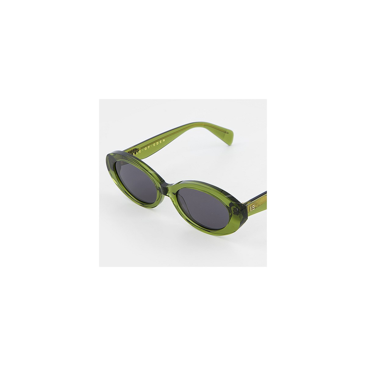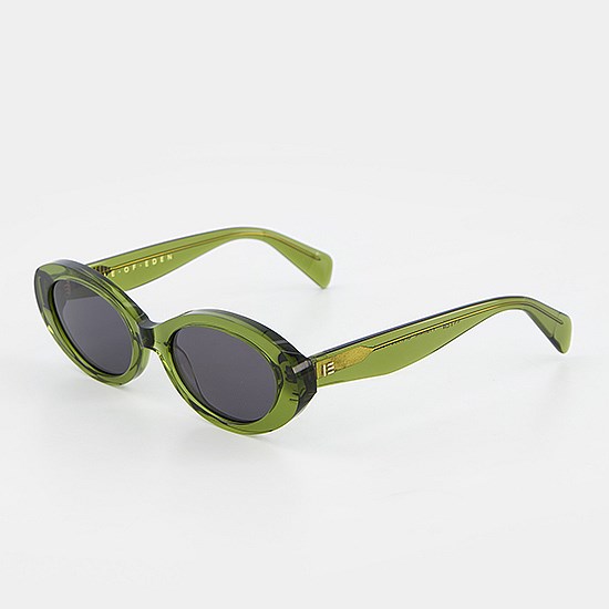 The Frankie is a classic curvy ’90s oval frame with a touch of ’50s glamour. It features thick curvy temples, low-base polarised lenses, and gold IE insignia on both temples.