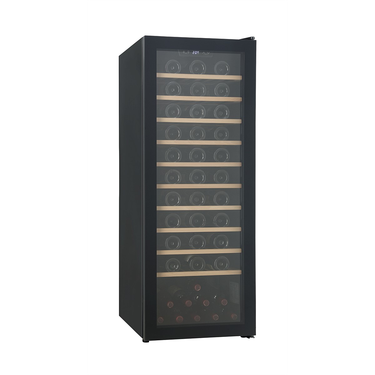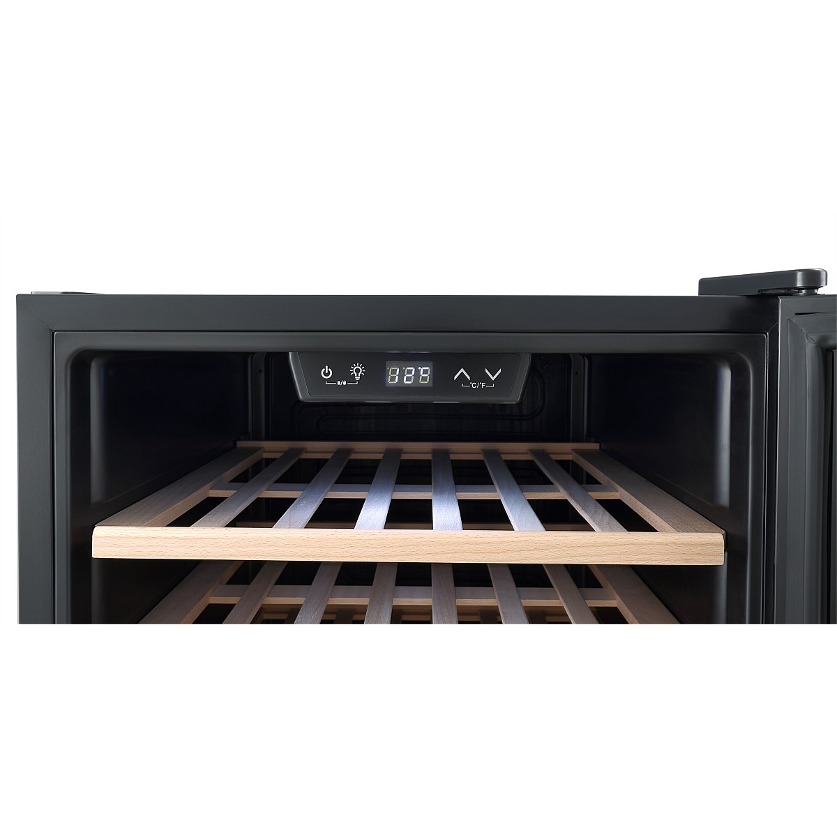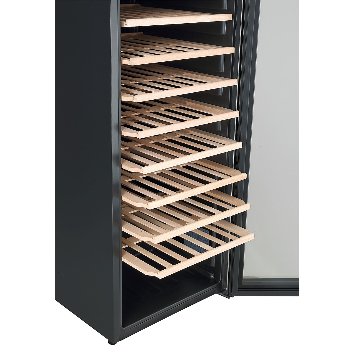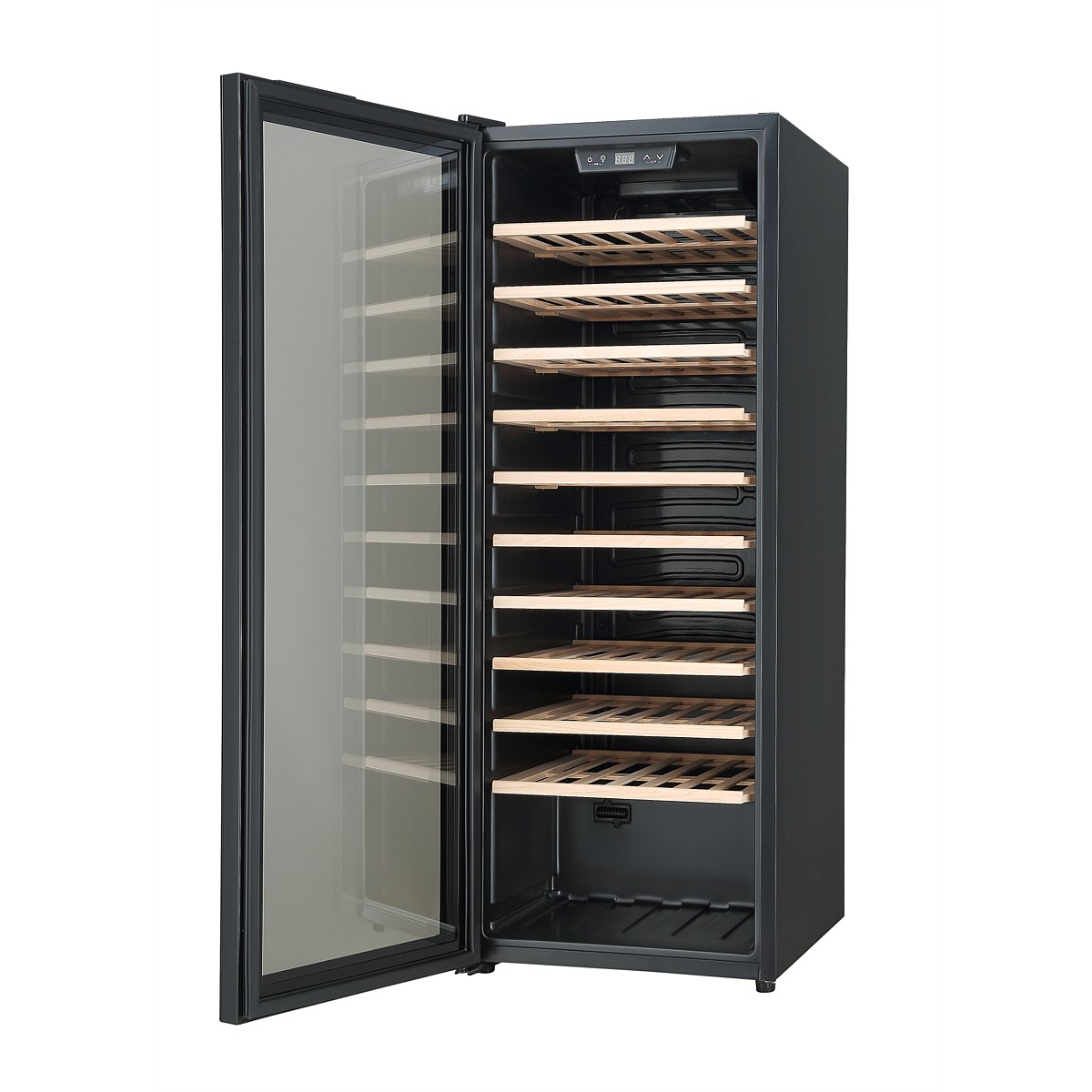 A freestanding wine chiller designed for non-recessed applications. Sophisticated edge-to-edge glass, recessed handles and beech wood shelves. Double glazed door helps to maintain stable temperatures and white LEDs reduce heat. All Euromaid wine chillers feature R600a refrigerant, with zero Ozone Depletion Potential and almost no Global Warming Potential (GWP=3). Available at selected 100% Appliance stores.