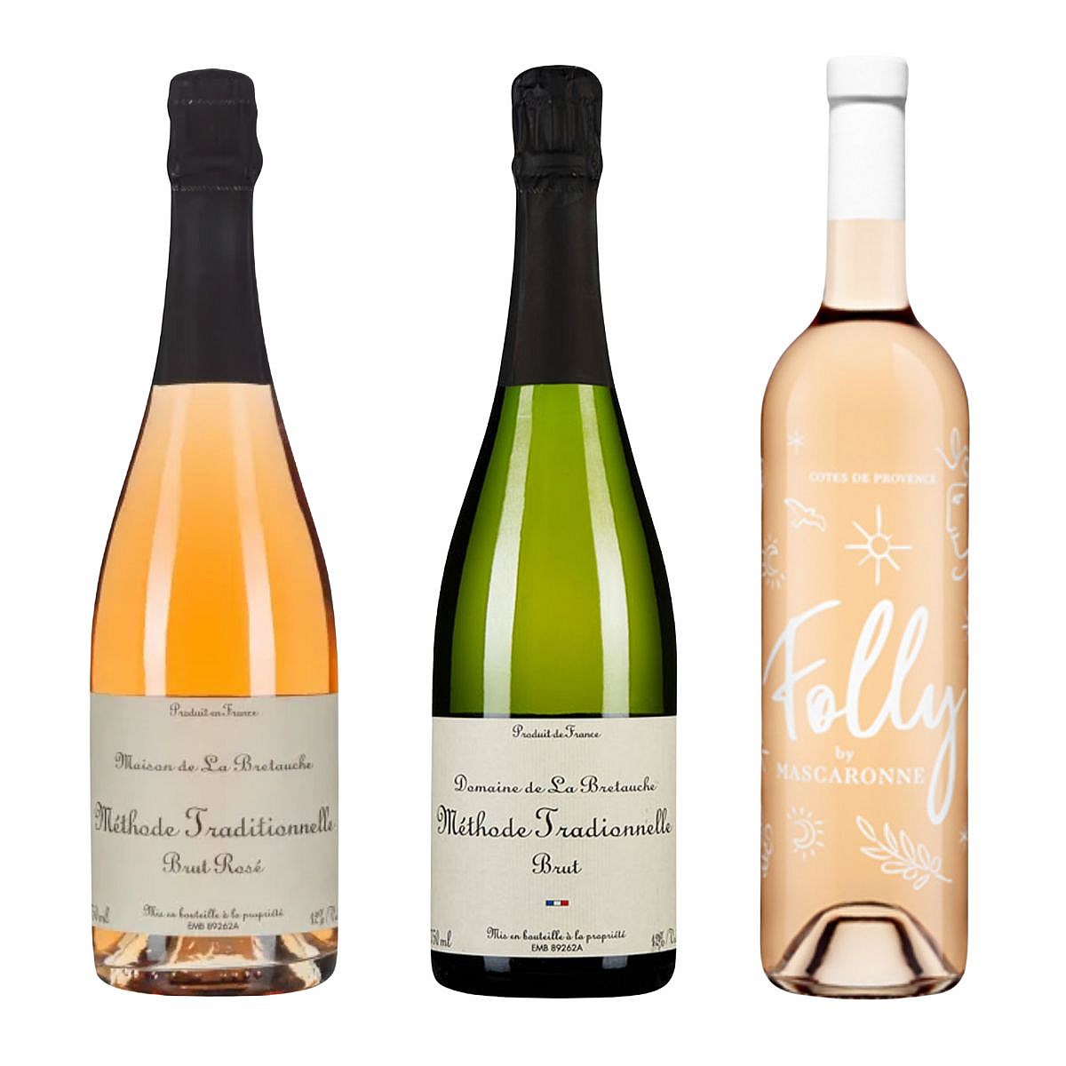 Light, fresh and effortlessly French. This three-bottle pack pairs the crisp charm of Domaine de la Bretauche with the elegance of its rosé, alongside Folly by Mascaronne — a refined Provence rosé full of summer brightness. Perfect for relaxed gatherings and warm evenings. Three bottles, sustainably packed and delivered.