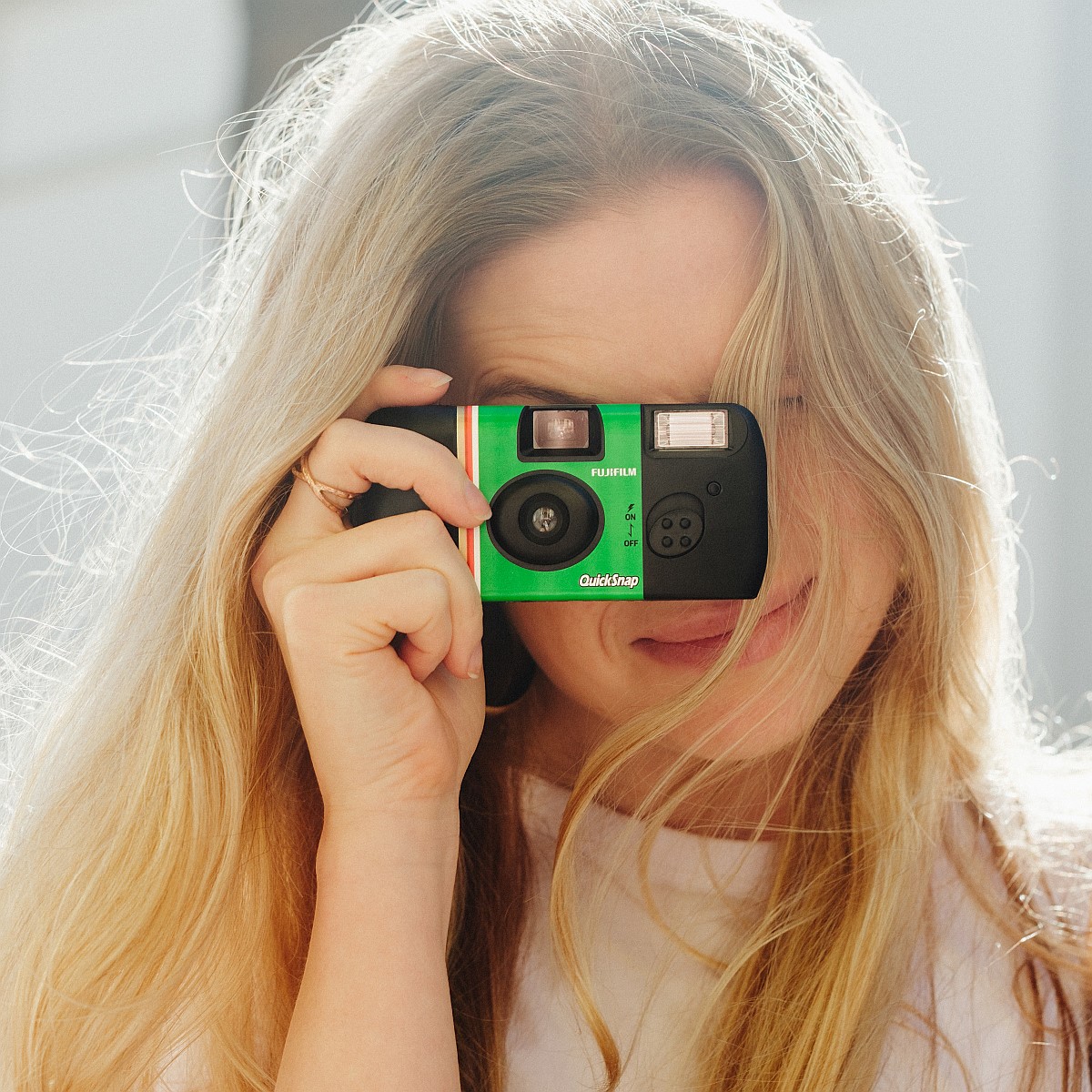 Simple, fun, and ready for anything – the Fujifilm QuickSnap is your go-to single use camera for capturing life’s spontaneous adventures. Whether it’s a festival, road trip, wedding, or a day at the beach, this compact point-and-shoot camera is preloaded with high-quality Fujifilm 35mm film and a built-in flash for sharp, vibrant photos in any light. With its effortless design and retro charm, the QuickSnap makes it easy to stay in the moment and relive it later – no batteries or apps required. Just click, develop, and enjoy.