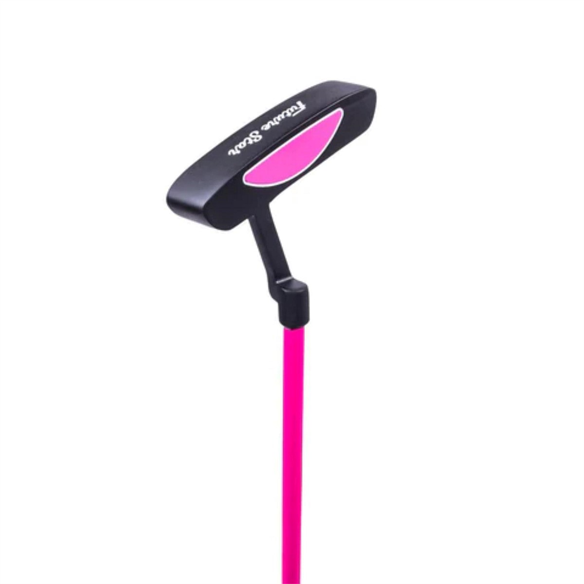 Kids need the right gear when starting golf and the new PGF Future Star JWS putters are a fun way to introduce the game. The Future Star JWS putters feature a classic offset heel-toe design and flat-front putter grip that will help them learn how to roll the ball on the green. Available in 3 separate length specifications in bright colour co-ordinated sizes that are perfect for kids starting golf.