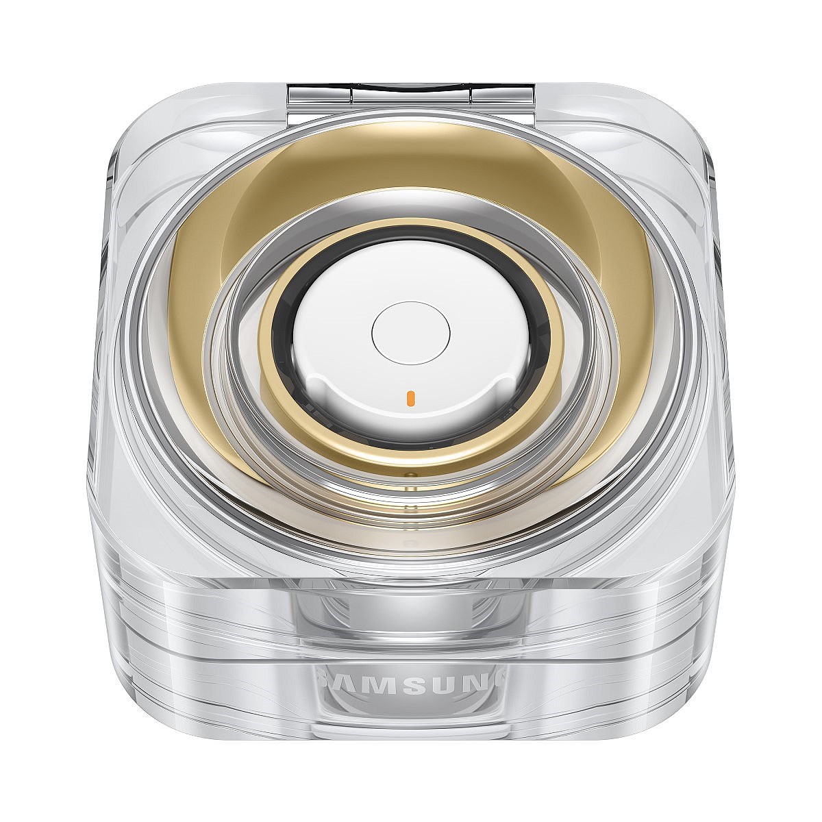 Even while charging in its crystal-clear Charging Case, the Galaxy Ring is a sight to behold. The delicate glow of the light around the Multi-purpose button indicates the battery charging level. The Charging Case can be charged wirelessly too, so simply place your Galaxy Ring securely in its case when you're on the go, and place it on a wireless charging pad for easy charging.