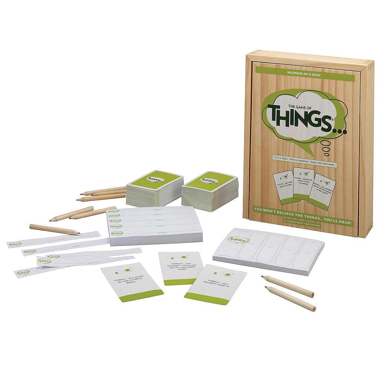 The ultimate 'who-said-what' game with attitude that presents players with provocative topics like "THINGS... you wouldn't do for a million dollars", "THINGS...zombies do when they're not eating people", or "THINGS... your parents forgot to tell you" and asks each player to write down whatever comes to mind.