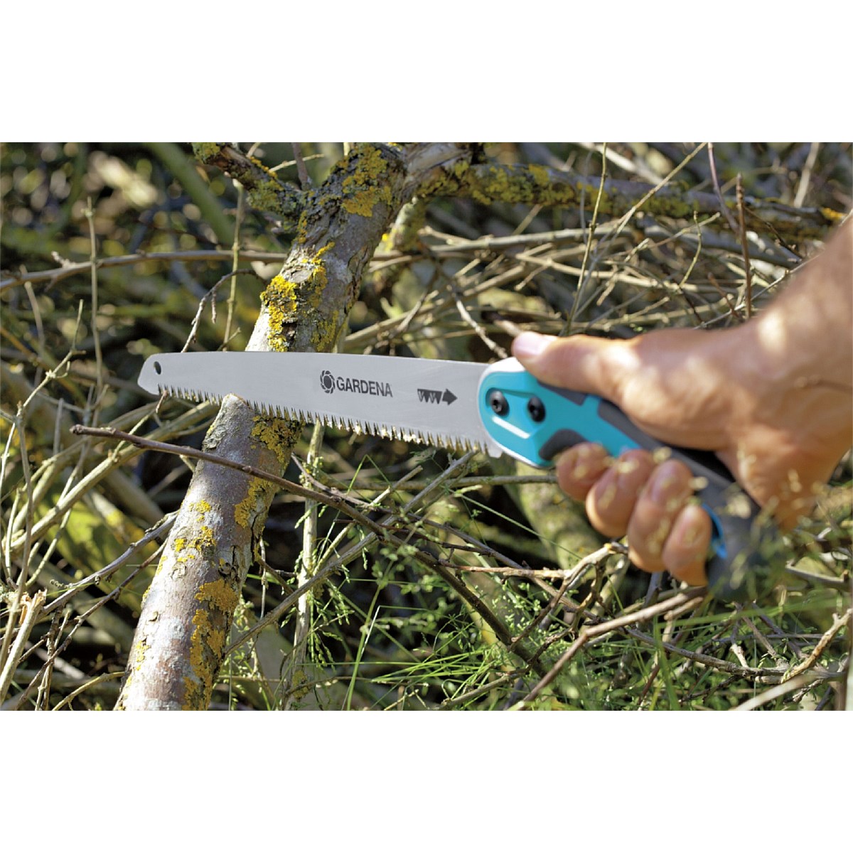 The Gardeners' Saw 300 P from GARDENA delivers clean cuts in wood. It has a usable saw length of 300 mm, works on tension and guarantees precise sawing with smooth running. The hard-chrome-plated saw blade has a long service life and is protected against corrosion. To keep the effort required for sawing as low as possible and to guarantee a smooth cut, the hand saw is equipped with triple-ground impulse-hardened toothing. These successful features lead to a high sawing performance and fatigue does not occur so quickly. Thanks to the slightly angled handle shape, the garden saw fits ergonomically in the hand. Built-in soft components and the slip stop at the end of the handle ensure safe handling with a firm grip. The blade cover ensures safe storage and the eyelet hanger means the saw can be stored in a space-saving manner as well as keeping it ready to hand at any time. The Gardeners' Saw 300 P is a quality product from Germany with a GARDENA manufacturer's warranty of 25 years.