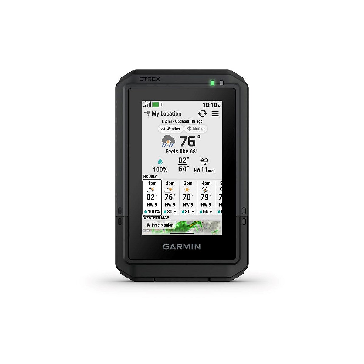 The eTrex Touch handheld is purpose-built with an IP67 water rating and impact-resistant (MIL-STD-810) design to withstand weather and rugged conditions.