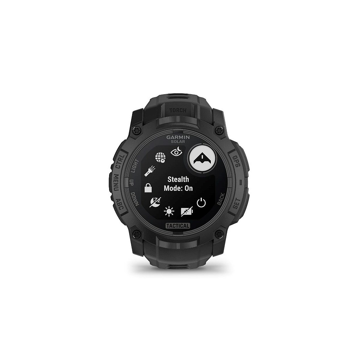 While keeping the tactical watch operational, stealth mode stops storing and sharing your GPS position and disables wireless connectivity and communication.